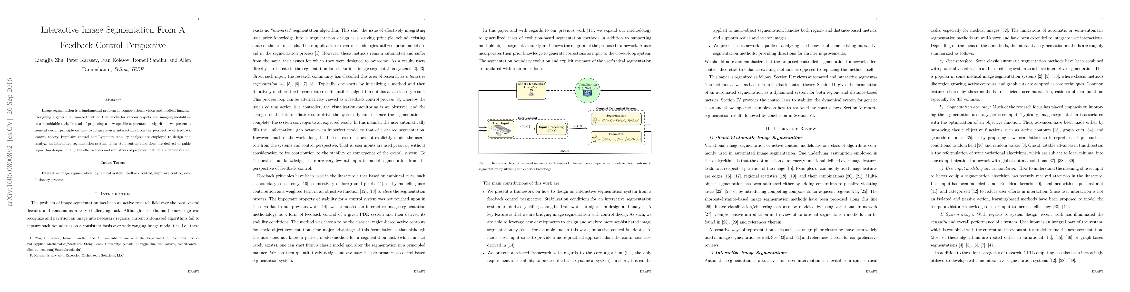 This paper proposes a general design principle for interactive image segmentation using feedback control theory, employing impulsive control and Lyapunov stability analysis to develop a robust system that integrates user interactions, and demonstrates its effectiveness through stabilization conditions.