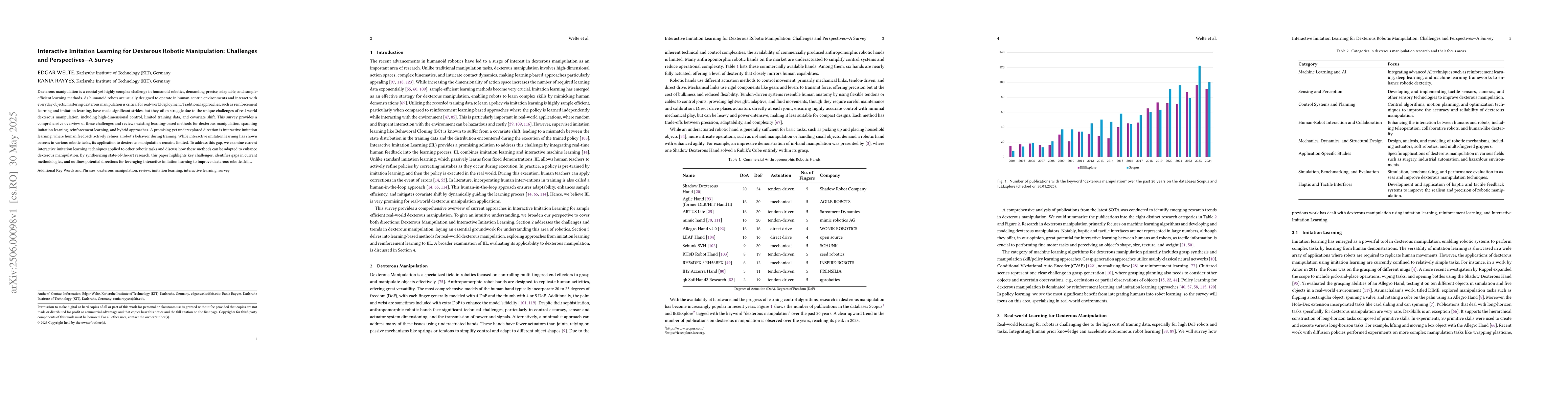 The paper synthesizes state-of-the-art research, identifying gaps in current methodologies and outlining potential directions for leveraging IIL in dexterous manipulation.