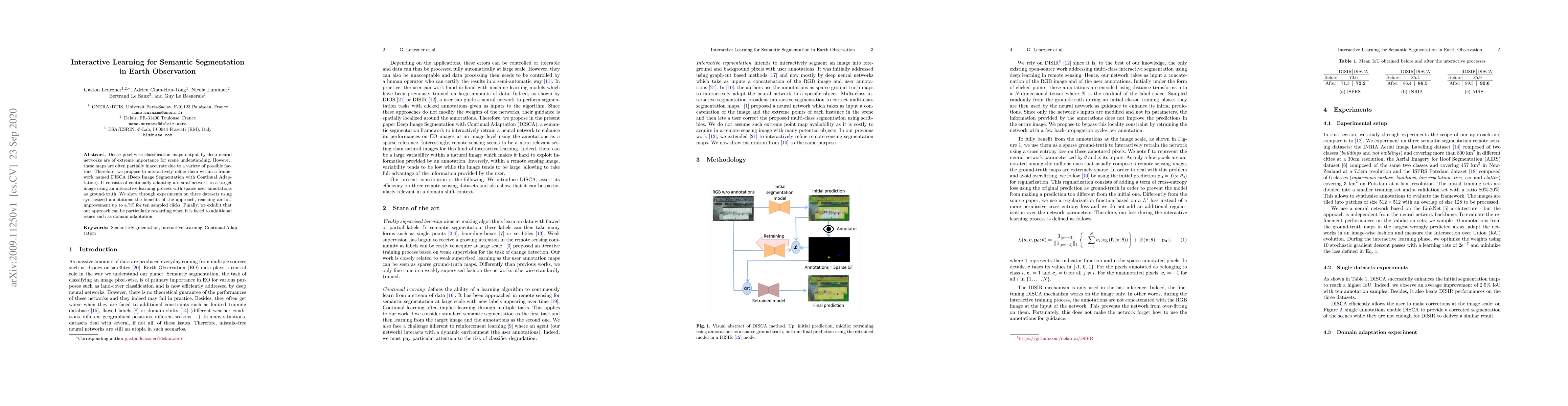 Dense pixel-wise classification maps output by deep neural networks are of extreme importance for scene understanding. However, these maps are often partially inaccurate due to a variety of possible factors. Therefore, we propose to interactively refine them within a framework named DISCA (Deep Image Segmentation with Continual Adaptation). It consists of continually adapting a neural network to a target image using an interactive learning process with sparse user annotations as ground-truth. We show through experiments on three datasets using synthesized annotations the benefits of the approach, reaching an IoU improvement up to 4.7% for ten sampled clicks. Finally, we exhibit that our approach can be particularly rewarding when it is faced to additional issues such as domain adaptation.