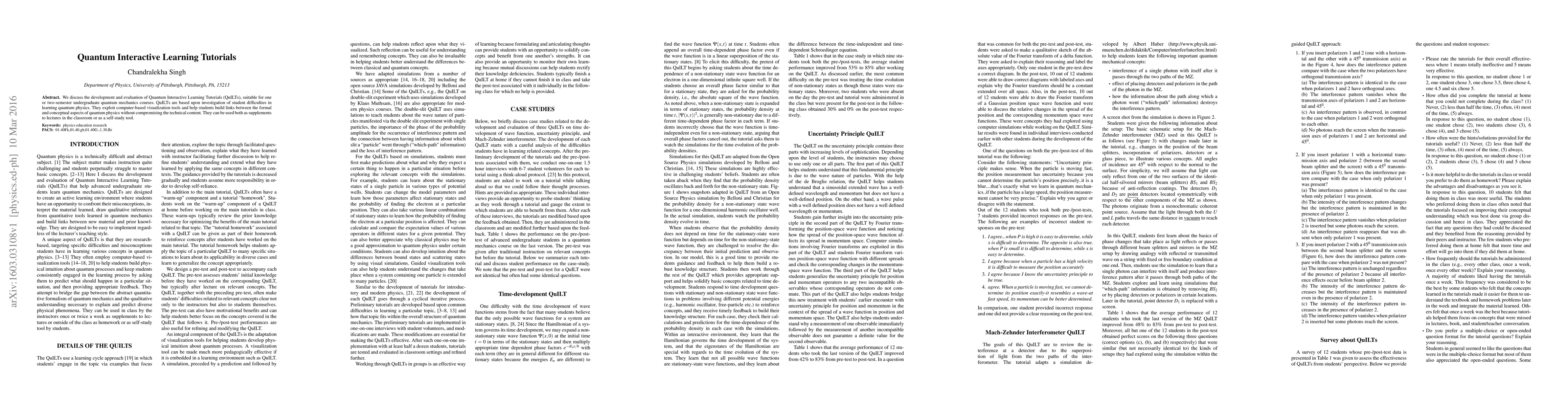 The paper evaluates the development of QuILTs, interactive tutorials designed to enhance undergraduate quantum mechanics learning through visualization tools, addressing common student difficulties and supporting both classroom and self-study use.