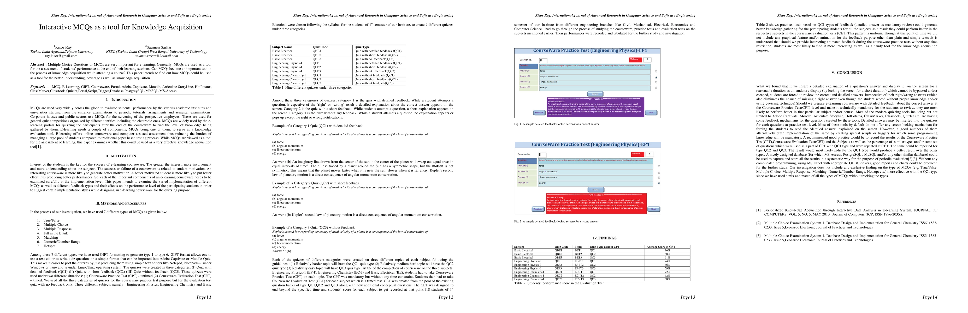 Multiple Choice Questions or MCQs are very important for e-learning. Generally, MCQs are used as a tool for the assessment of student performance at the end of their learning sessions. Can MCQs become an important tool in the process of knowledge acquisition while attending a course? This paper intends to find out how MCQs could be used as a tool for the better understanding, coverage as well as knowledge acquisition.