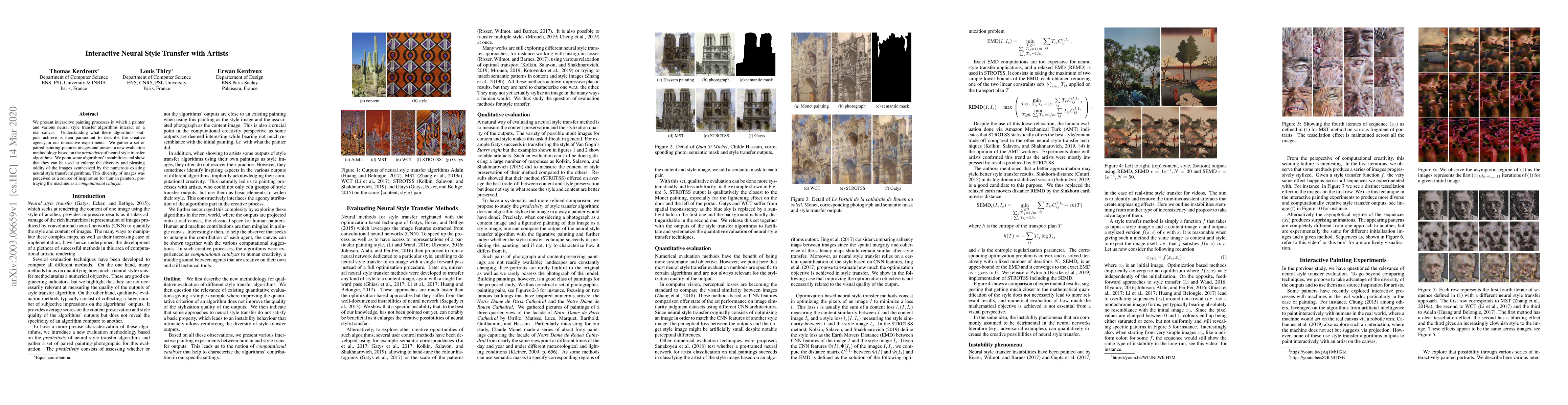 We present interactive painting processes in which a painter and various neural style transfer algorithms interact on a real canvas. Understanding what these algorithms' outputs achieve is then paramount to describe the creative agency in our interactive experiments. We gather a set of paired painting-pictures images and present a new evaluation methodology based on the predictivity of neural style transfer algorithms. We point some algorithms' instabilities and show that they can be used to enlarge the diversity and pleasing oddity of the images synthesized by the numerous existing neural style transfer algorithms. This diversity of images was perceived as a source of inspiration for human painters, portraying the machine as a computational catalyst.