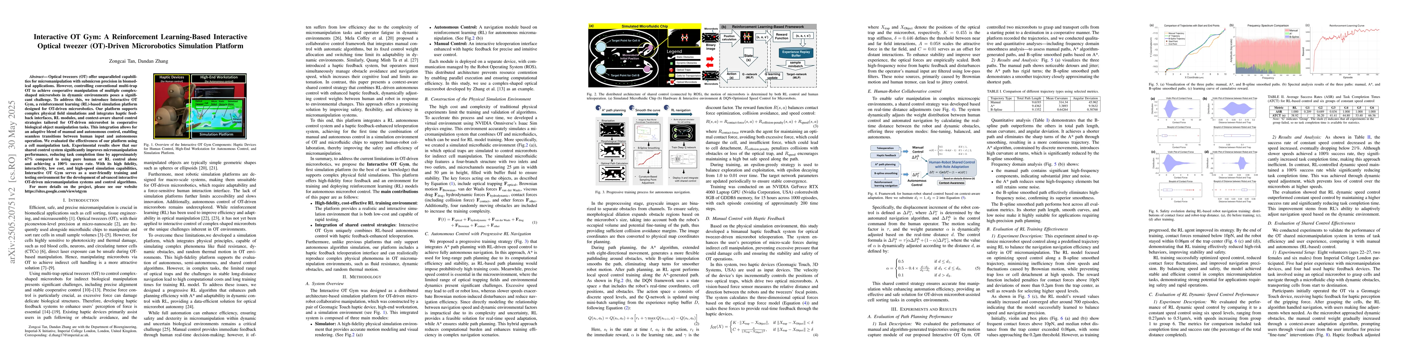 The research introduces Interactive OT Gym, a reinforcement learning (RL)-based simulation platform for OT-driven microrobotics, integrating complex physical field simulations, haptic feedback interfaces, RL modules, and context-aware shared control strategies.