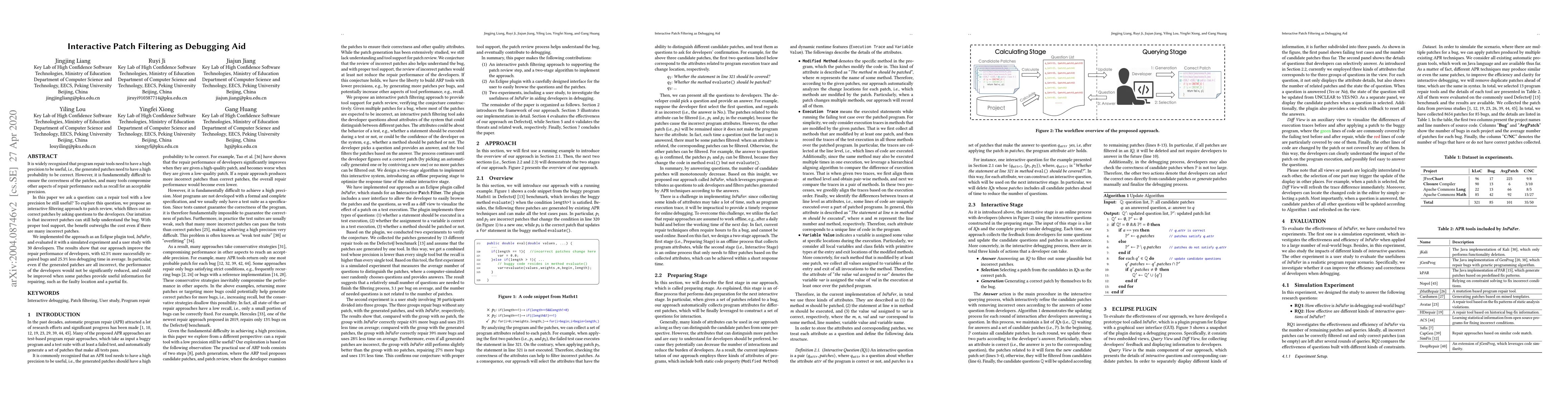 It is widely recognized that program repair tools need to have a high precision to be useful, i.e., the generated patches need to have a high probability to be correct. However, it is fundamentally difficult to ensure the correctness of the patches, and many tools compromise other aspects of repair performance such as recall for an acceptable precision. In this paper we ask a question: can a repair tool with a low precision be still useful? To explore this question, we propose an interactive filtering approach to patch review, which filters out incorrect patches by asking questions to the developers. Our intuition is that incorrect patches can still help understand the bug. With proper tool support, the benefit outweighs the cost even if there are many incorrect patches. We implemented the approach as an Eclipse plugin tool, InPaFer, and evaluated it with a simulated experiment and a user study with 30 developers. The results show that our approach improve the repair performance of developers, with 62.5% more successfully repaired bugs and 25.3% less debugging time in average. In particular, even if the generated patches are all incorrect, the performance of the developers would not be significantly reduced, and could be improved when some patches provide useful information for repairing, such as the faulty location and a partial fix.