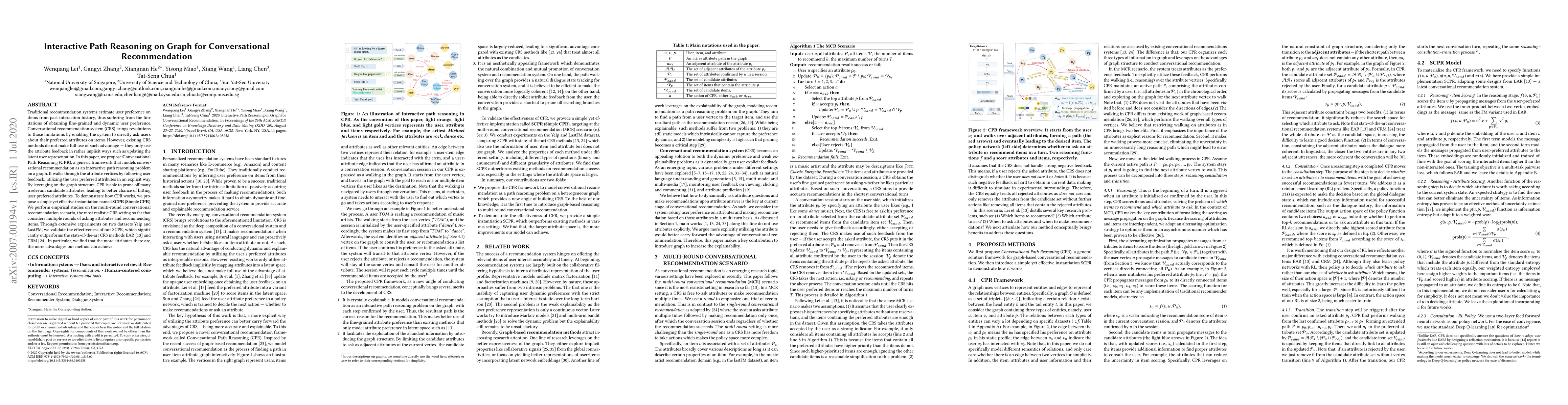 This paper proposes Conversational Path Reasoning (CPR), a framework for conversational recommendation that explicitly models user preferences through interactive path reasoning on a graph. The proposed SCPR instantiation outperforms existing methods by leveraging user feedback to prune irrelevant attributes and more accurately recommend items, as demonstrated in experiments on Yelp and LastFM datasets.