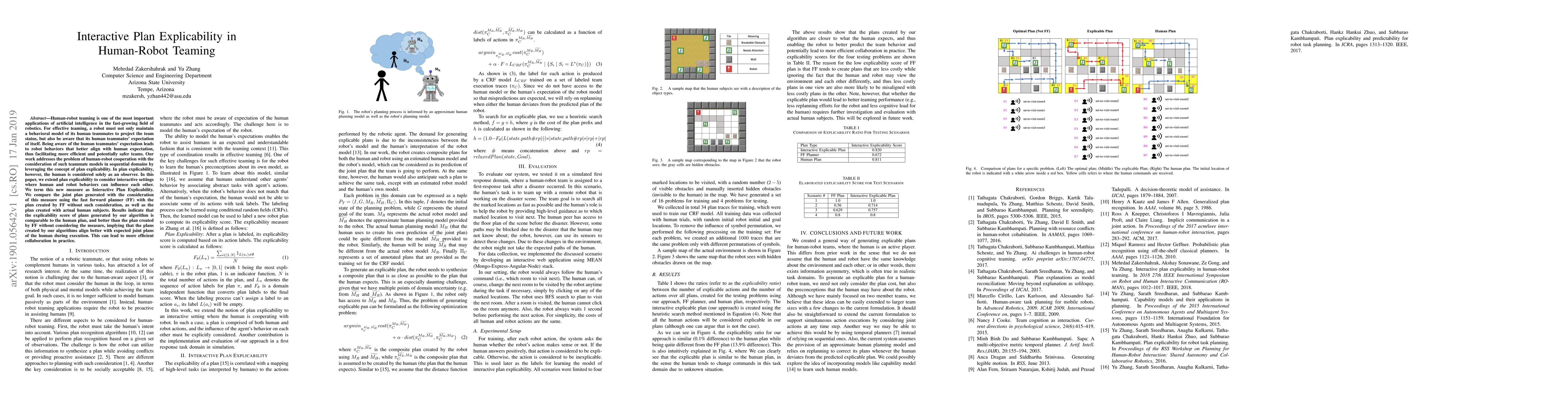 This paper introduces Interactive Plan Explicability to enhance human-robot teaming by allowing mutual influence between human and robot behaviors. The study shows that plans generated with this measure align better with human expectations, leading to more efficient collaboration.