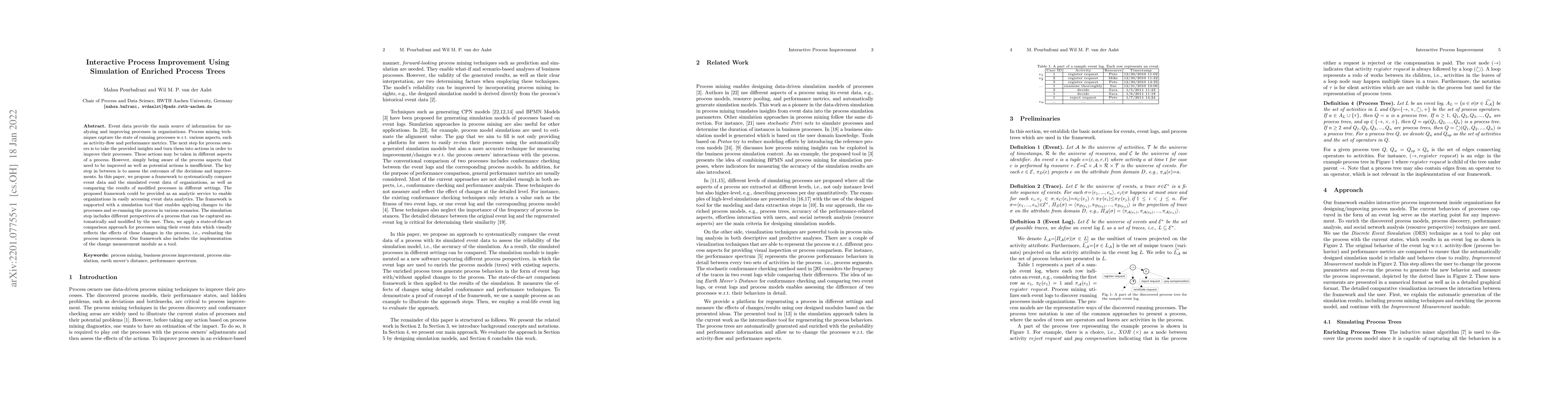 Event data provide the main source of information for analyzing and improving processes in organizations. Process mining techniques capture the state of running processes w.r.t. various aspects, such as activity-flow and performance metrics. The next step for process owners is to take the provided insights and turn them into actions in order to improve their processes. These actions may be taken in different aspects of a process. However, simply being aware of the process aspects that need to be improved as well as potential actions is insufficient. The key step in between is to assess the outcomes of the decisions and improvements. In this paper, we propose a framework to systematically compare event data and the simulated event data of organizations, as well as comparing the results of modified processes in different settings. The proposed framework could be provided as an analytic service to enable organizations in easily accessing event data analytics. The framework is supported with a simulation tool that enables applying changes to the processes and re-running the process in various scenarios. The simulation step includes different perspectives of a process that can be captured automatically and modified by the user. Then, we apply a state-of-the-art comparison approach for processes using their event data which visually reflects the effects of these changes in the process, i.e., evaluating the process improvement. Our framework also includes the implementation of the change measurement module as a tool.