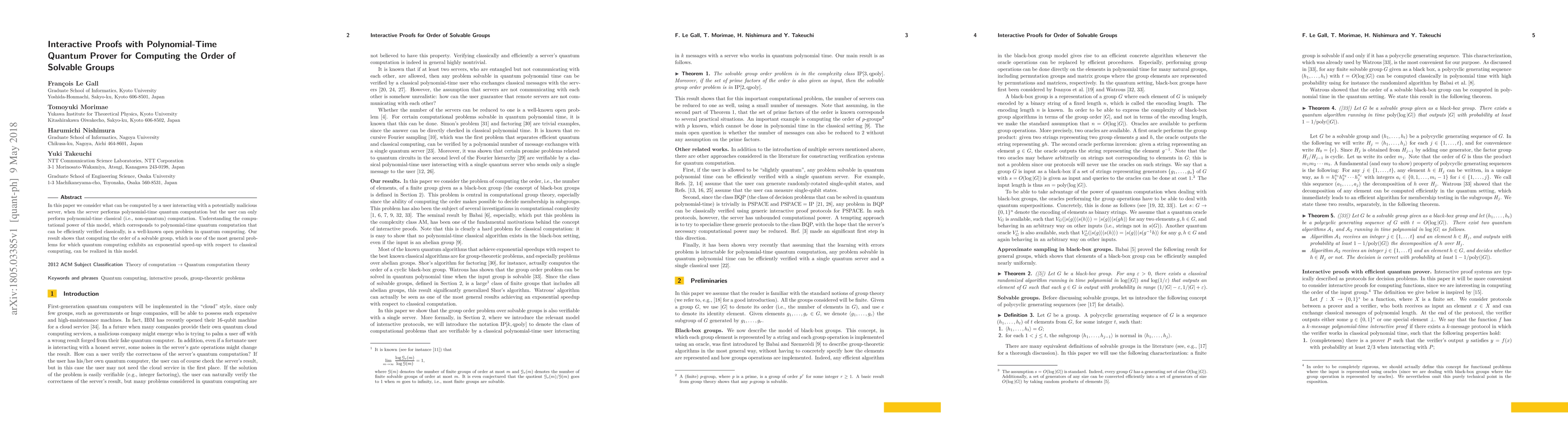 Researchers developed an interactive proof system that allows a user to compute the order of a solvable group in polynomial time, even when the computation is performed on a quantum server with potentially malicious behavior.