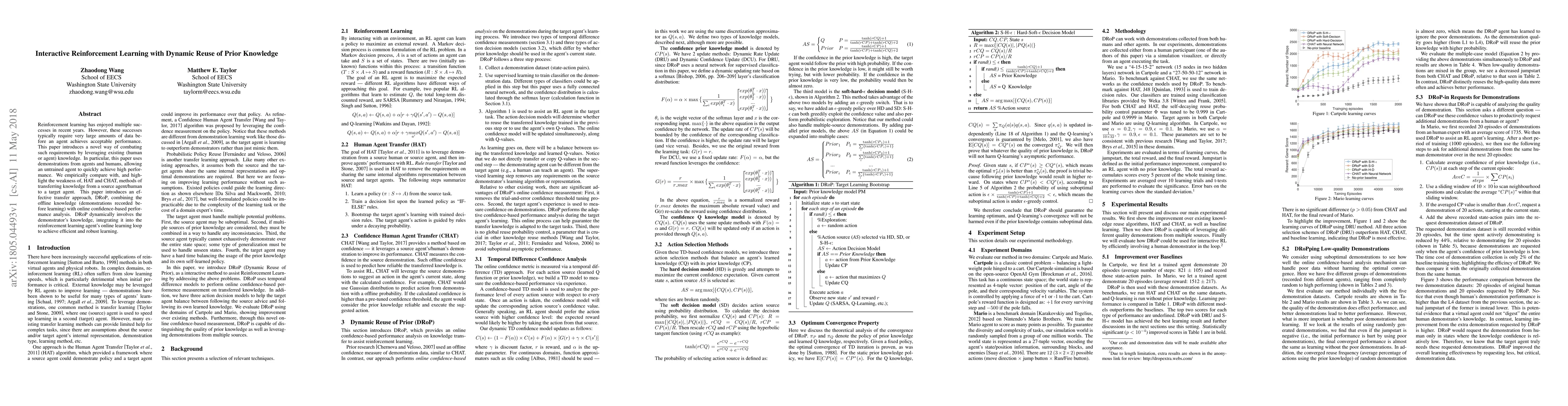 This paper proposes DRoP, a method for interactive reinforcement learning that leverages prior knowledge from human or agent demonstrations to reduce the need for extensive data. It contrasts with HAT and CHAT, introducing a dynamic reuse approach that integrates offline demonstrations with online performance analysis to improve learning efficiency and robustness.