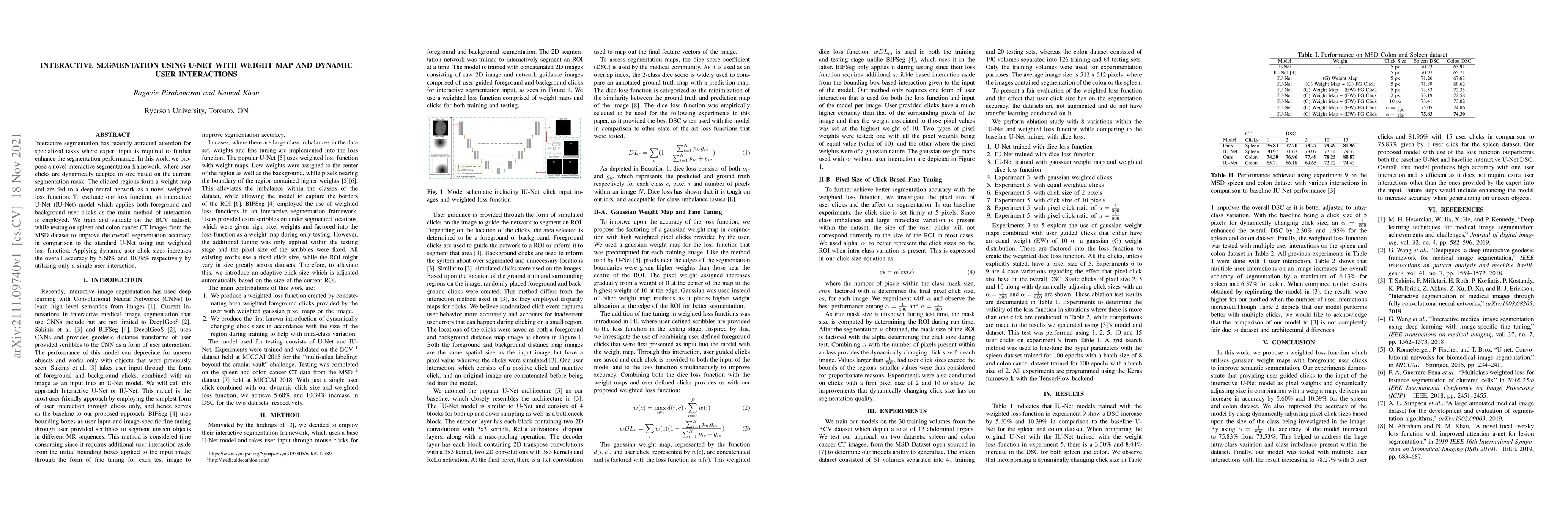 A new interactive segmentation framework using a U-Net model with dynamic user interactions improves segmentation accuracy by 5.60% and 10.39% on two datasets.