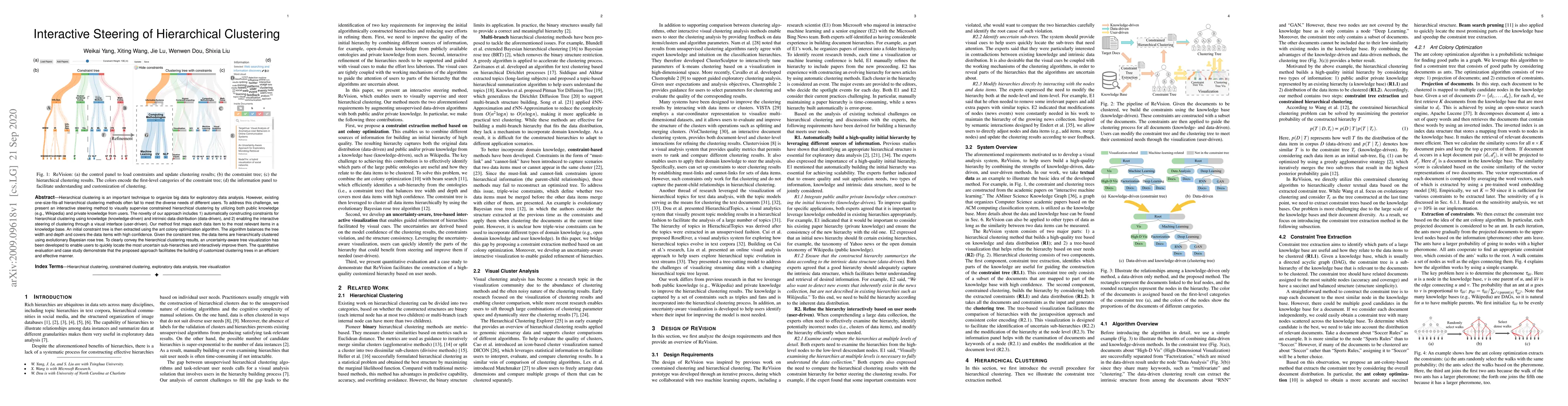 This paper introduces an interactive, knowledge-driven method for hierarchical clustering that allows users to visually steer the clustering process using both public and private knowledge. The approach combines knowledge-driven and data-driven constraints, and employs an evolutionary Bayesian rose tree for clustering, supplemented by an uncertainty-aware visualization for user interaction.