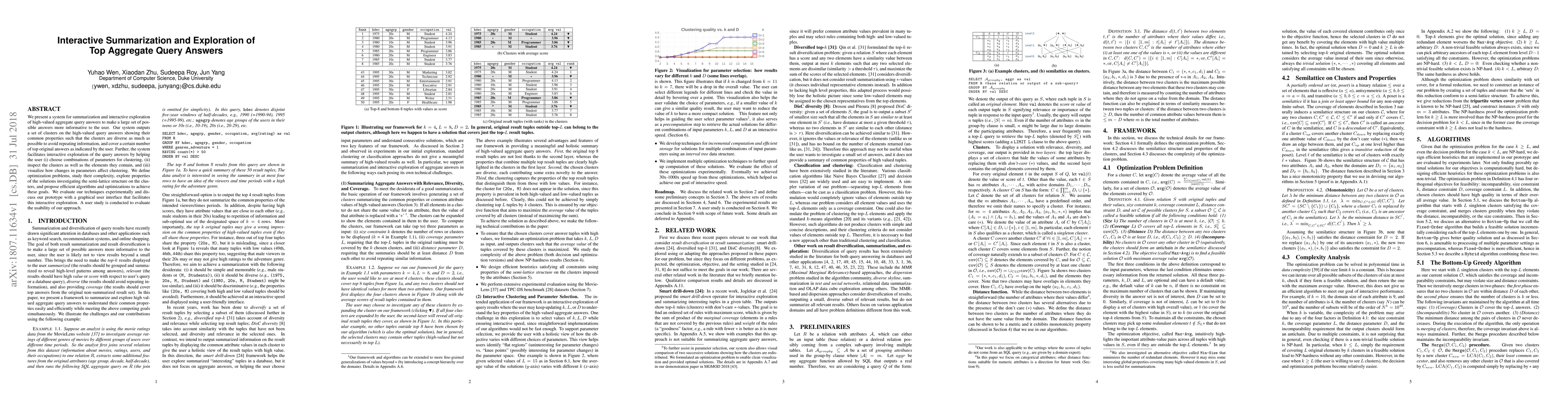 Researchers developed a system to visually organize high-valued query answers into diverse clusters, allowing users to interactively explore and refine the results. The system enables users to choose clustering parameters, visualize changes, and evaluate the usability of the approach in a user study.