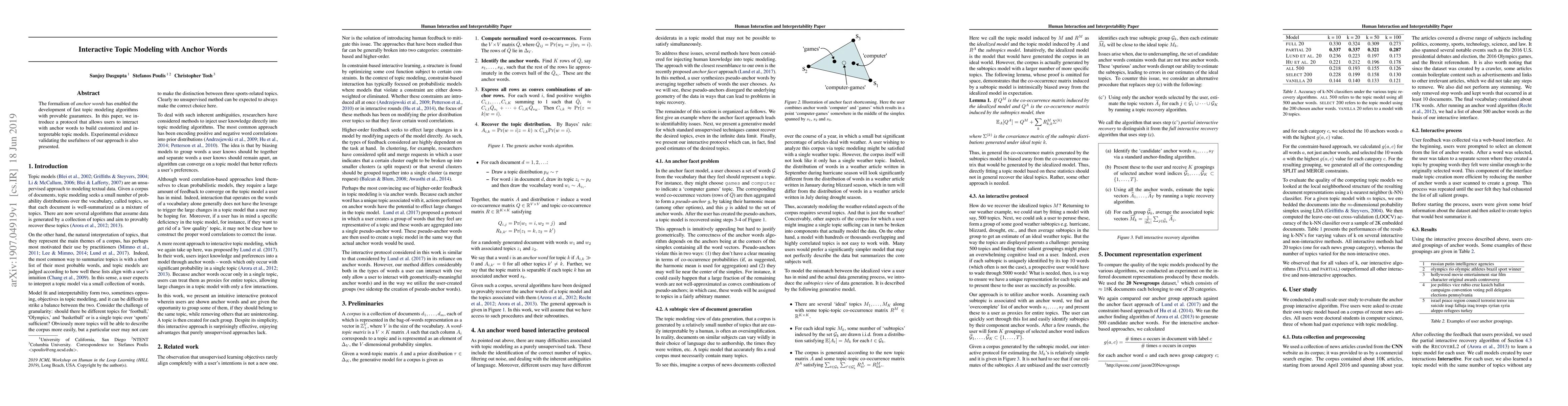 This paper introduces a protocol for interactive topic modeling using anchor words, allowing users to build customized and interpretable models, with experimental evidence validating its usefulness.