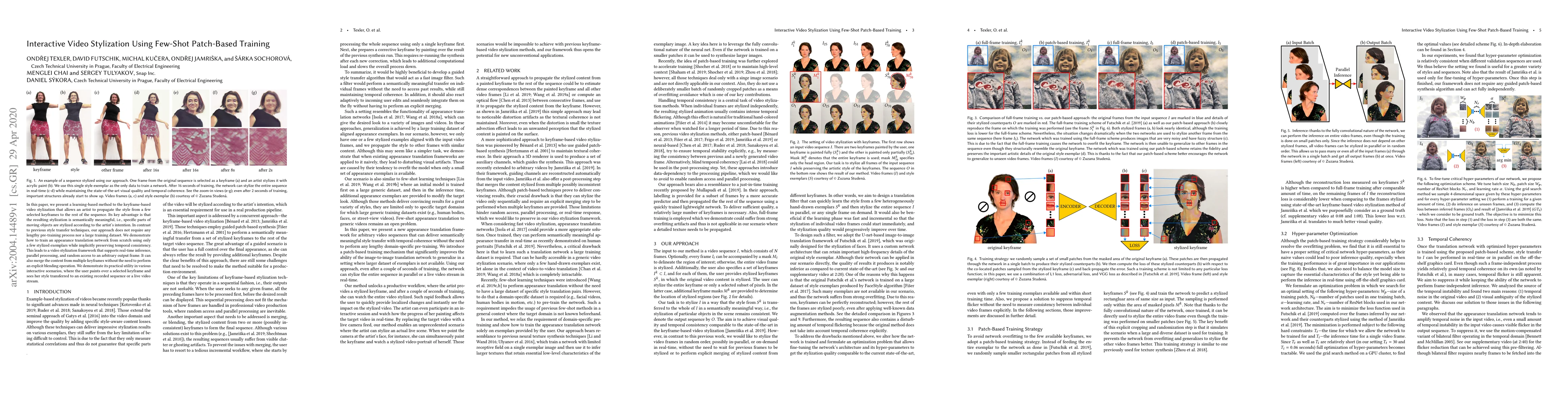 This paper introduces a learning-based method for keyframe-based video stylization that allows artists to apply style from a few selected keyframes to the entire sequence, ensuring semantically meaningful stylization. The approach enables real-time inference and requires only a few stylized exemplars for training.