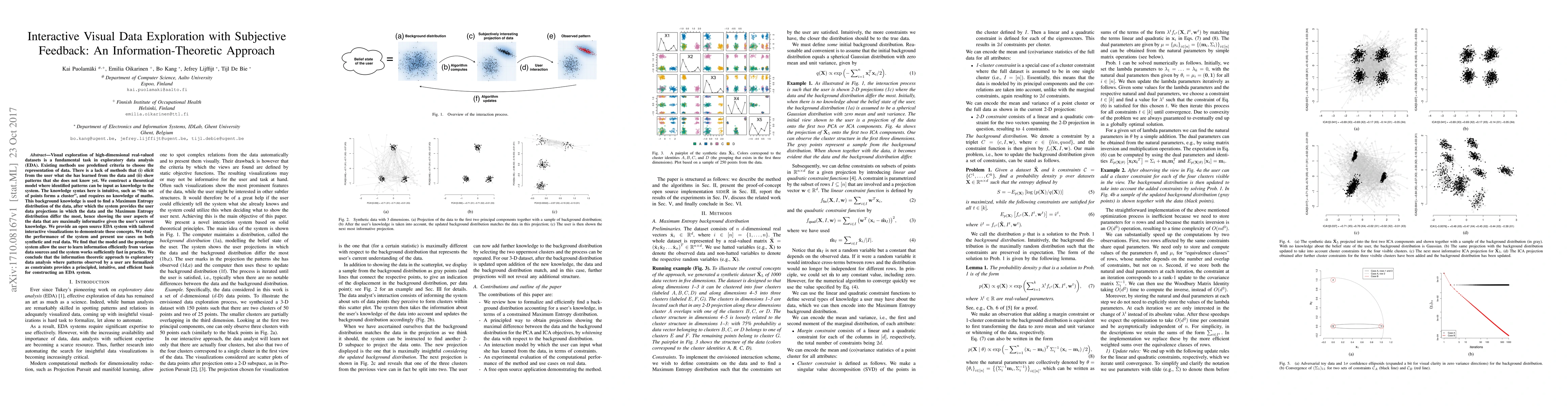 This research paper presents an information-theoretic approach to interactive visual data exploration that uses user feedback to identify patterns in high-dimensional datasets.