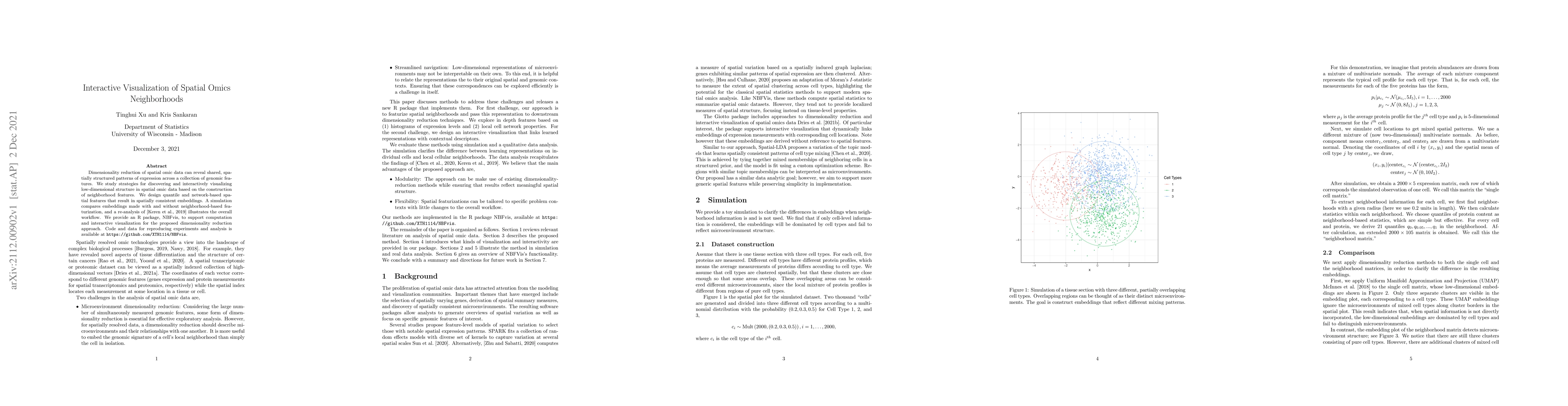 The paper introduces an R package, NBFvis, for computing and interactively visualizing neighborhood-based dimensionality reduction of spatial omics data, facilitating the exploration of microenvironments.