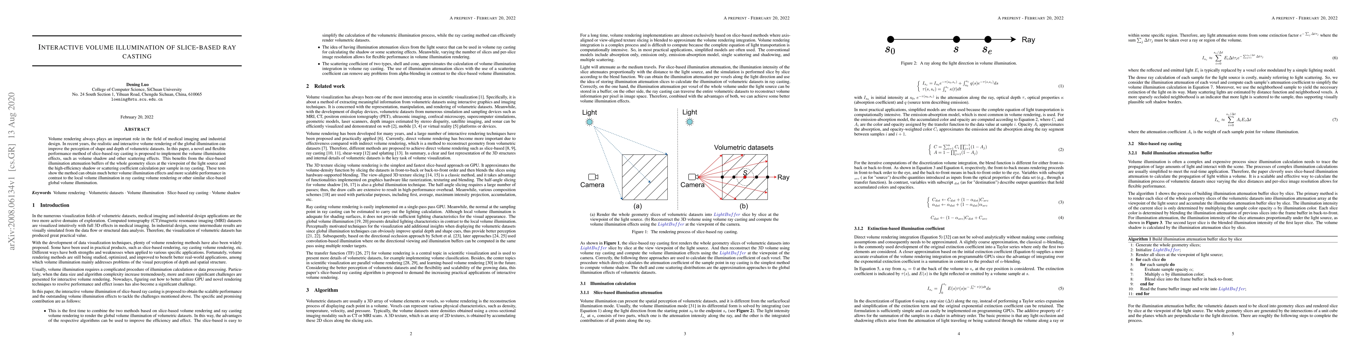 This paper proposes a novel slice-based ray casting method for interactive volume illumination, achieving realistic volume shadow and scattering effects through efficient attenuation buffers and high-performance calculations. The method demonstrates superior scalability and performance compared to local volume illumination techniques.