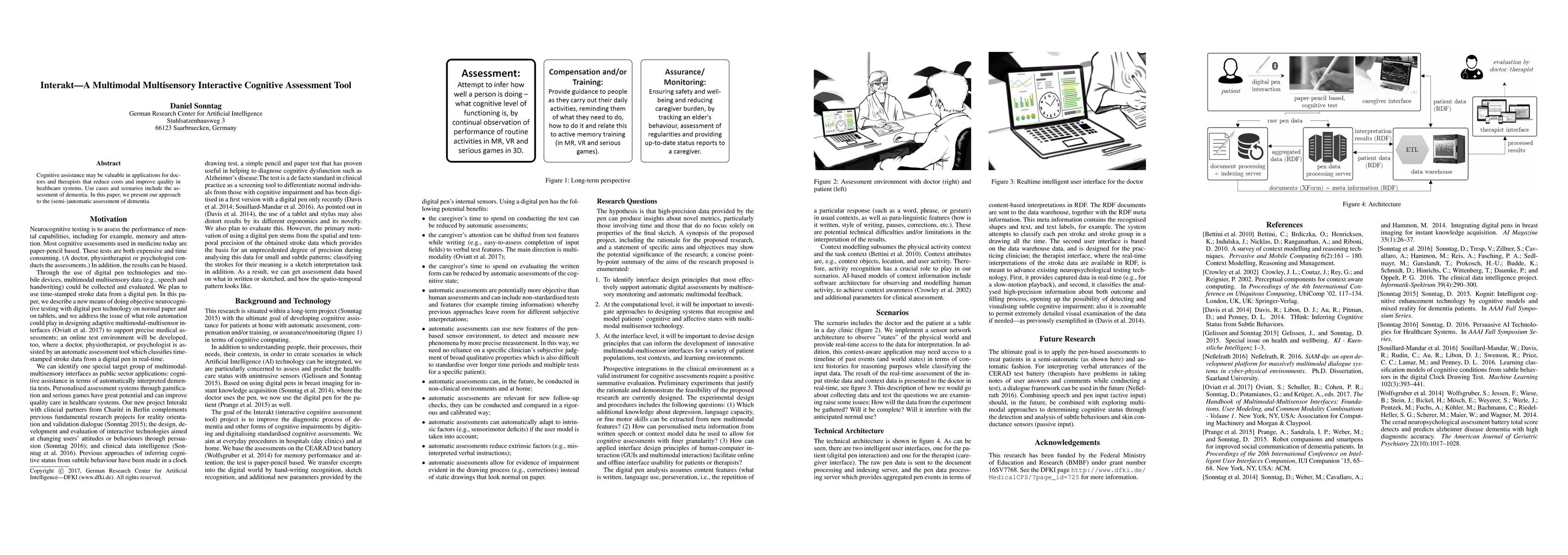 Cognitive assistance may be valuable in applications for doctors and therapists that reduce costs and improve quality in healthcare systems. Use cases and scenarios include the assessment of dementia. In this paper, we present our approach to the (semi-)automatic assessment of dementia.