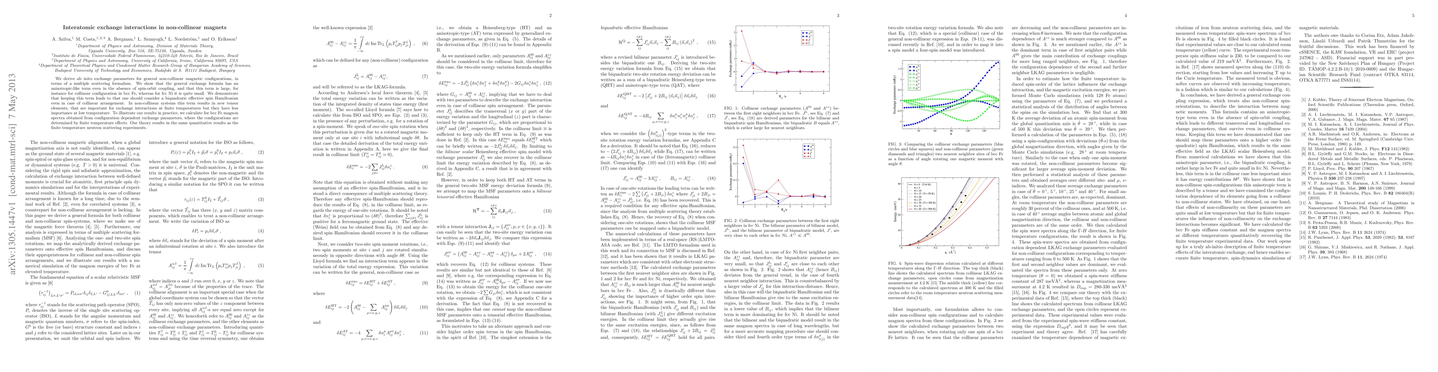 Researchers derive ab inito exchange parameters for non-collinear magnets, revealing anisotropic-like terms that affect spin interactions, particularly at finite temperatures.
