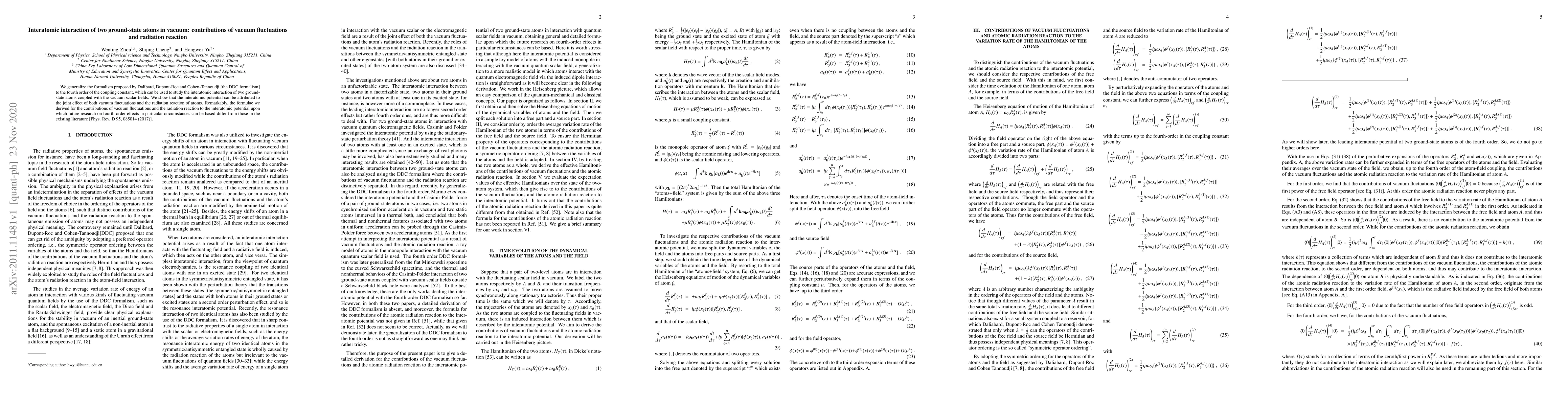 This paper generalizes the DDC formalism to fourth-order coupling to study interatomic interactions in vacuum, attributing the interatomic potential to vacuum fluctuations and radiation reaction. The derived formulae for these contributions differ from existing literature, providing a new basis for future research on fourth-order effects.