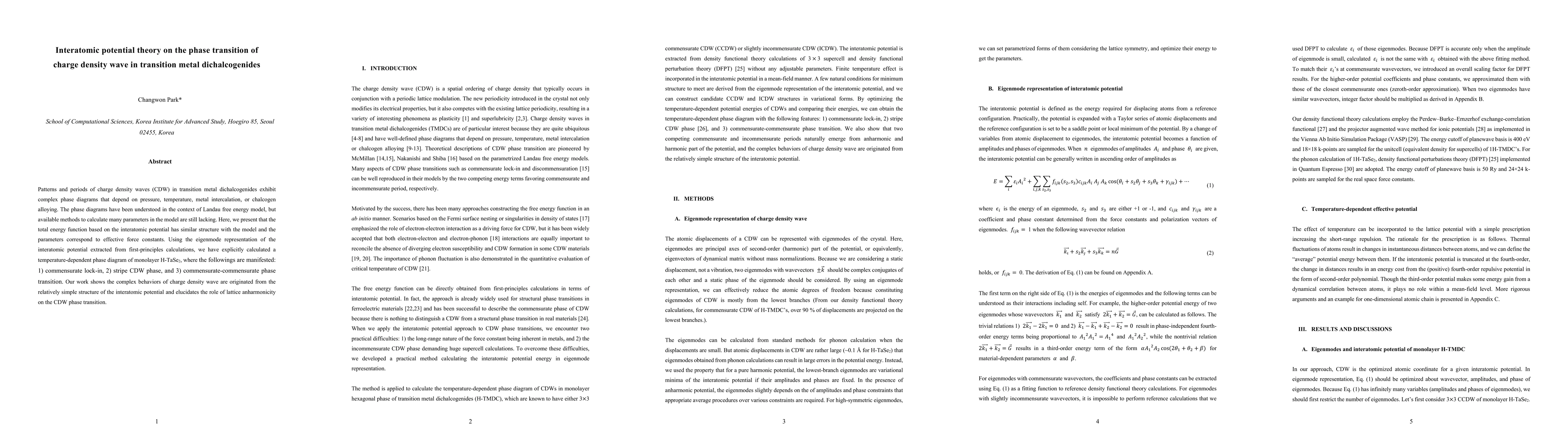 This paper introduces a new microscopic interatomic potential theory to explain the phase transition of charge density waves in transition metal dichalcogenides, revealing that complex CDW behaviors arise from simple interatomic potential structures and highlighting the influence of lattice anharmonicity. The theory successfully reproduces experimental features in monolayer H-TaSe2.