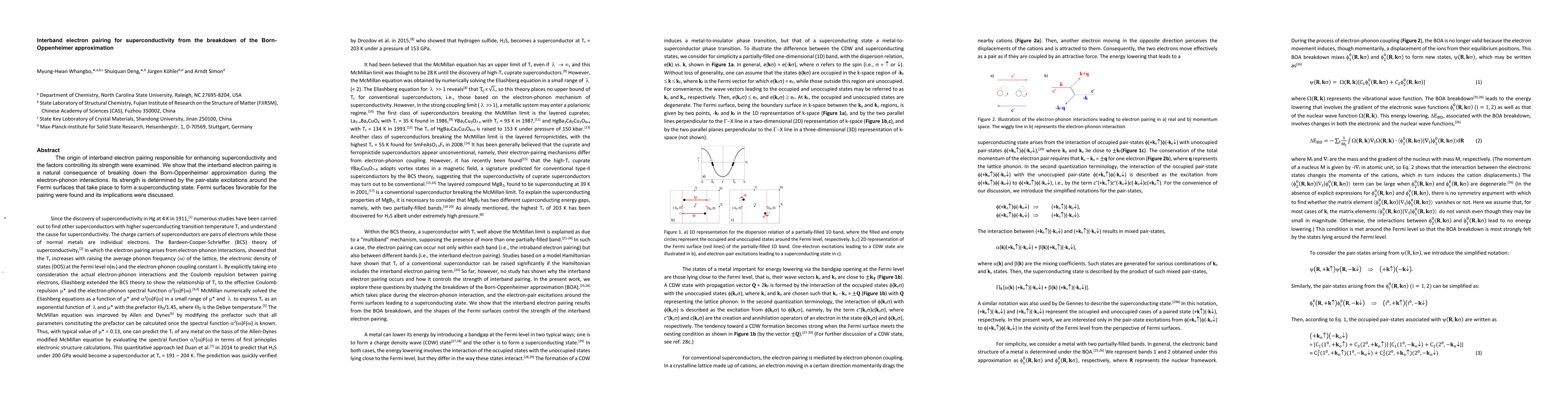The research identifies interband electron pairing as a result of breaking the Born-Oppenheimer approximation in electron-phonon interactions, crucial for superconductivity. The strength of this pairing is linked to pair-state excitations around Fermi surfaces, with favorable Fermi surfaces discussed for enhancing superconductivity.