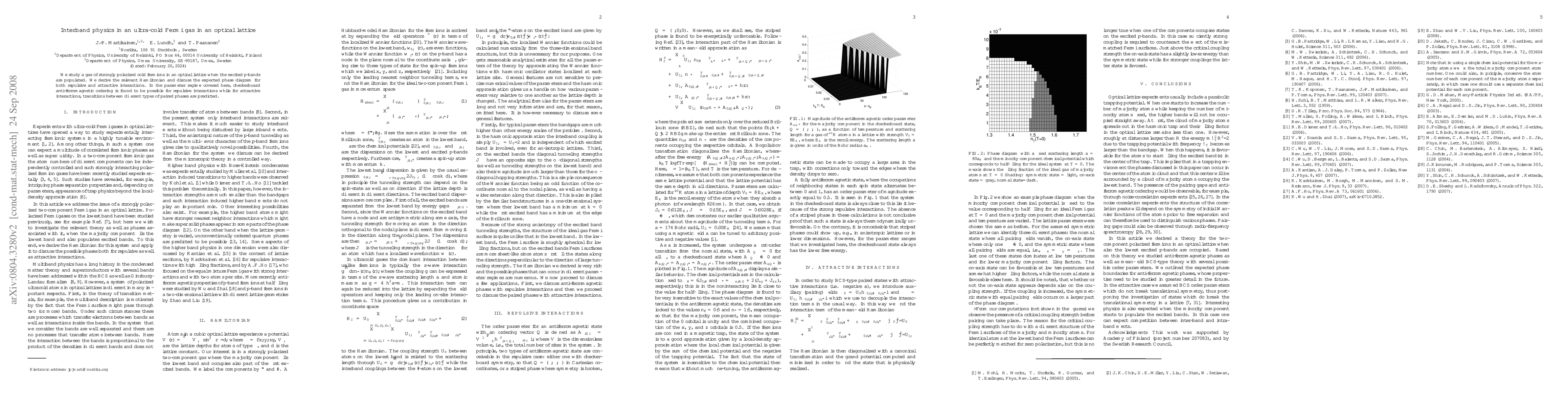 Researchers studied a gas of ultra-cold fermions in an optical lattice with excited p-bands populated, finding checkerboard anti-ferromagnetic ordering for repulsive interactions and transitions to different paired phases for attractive interactions.
