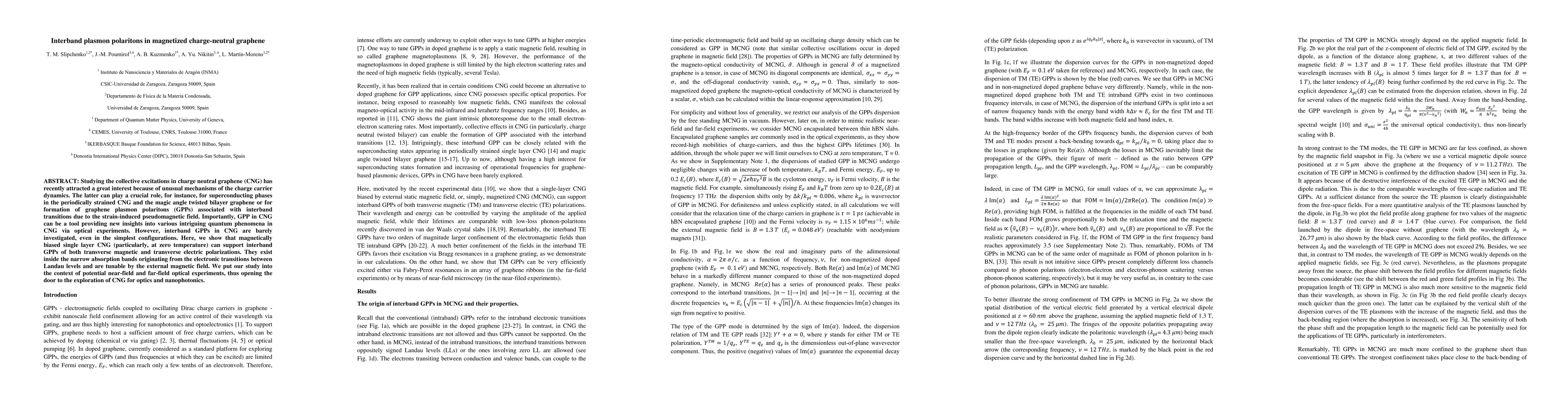 Studying the collective excitations in charge neutral graphene (CNG) has recently attracted a great interest because of unusual mechanisms of the charge carrier dynamics. The latter can play a crucial role, for instance, for superconducting phases in the periodically strained CNG and the magic angle twisted bilayer graphene or for formation of graphene plasmon polaritons (GPPs) associated with interband transitions due to the strain-induced pseudomagnetic field. Importantly, GPP in CNG can be a tool providing new insights into various intriguing quantum phenomena in CNG via optical experiments. However, interband GPPs in CNG are barely investigated, even in the simplest configurations. Here, we show that magnetically biased single layer CNG (particularly, at zero temperature) can support interband GPPs of both transverse magnetic and transverse electric polarizations. They exist inside the narrow absorption bands originating from the electronic transitions between Landau levels and are tunable by the external magnetic field. We put our study into the context of potential near-field and far-field optical experiments, thus opening the door to the exploration of CNG for optics and nanophotonics.