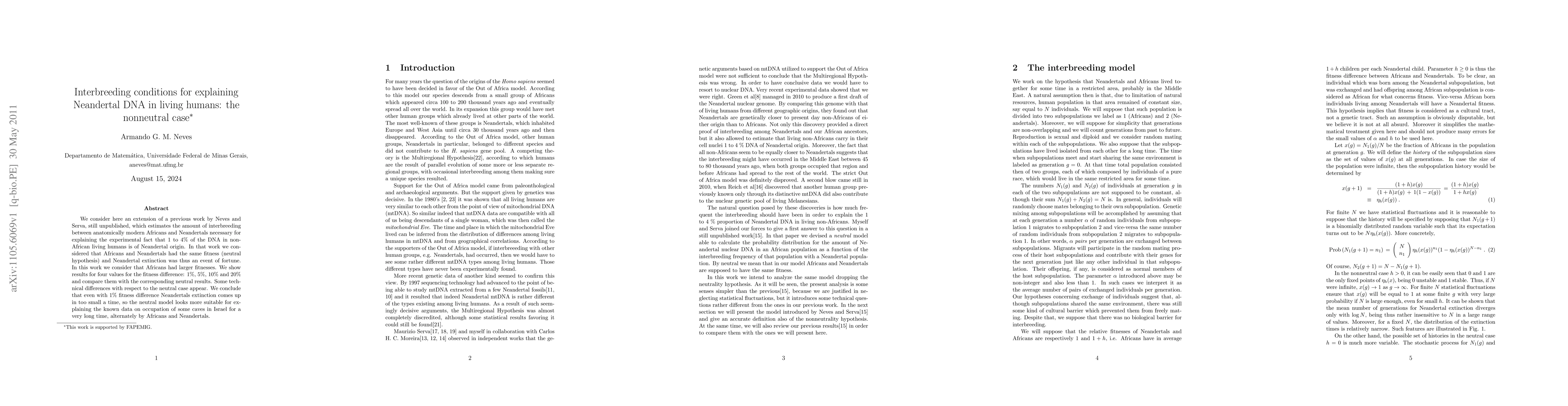 This paper extends previous research on interbreeding between Neandertals and anatomically modern Africans, focusing on nonneutral fitness differences. It finds that even a small fitness advantage for Africans leads to Neandertal extinction too quickly, suggesting the neutral model better explains the observed DNA contributions from Neandertals in non-African populations.