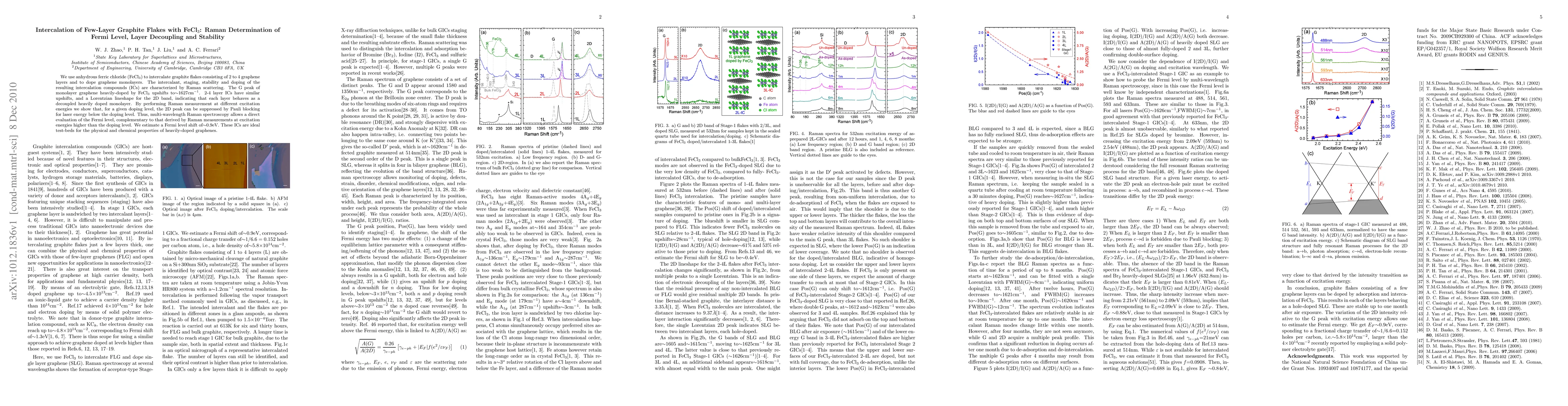 This study intercalates few-layer graphite flakes with FeCl3, using Raman spectroscopy to determine the Fermi level, layer decoupling, and stability. The results show that each layer behaves as a decoupled, heavily doped monolayer, with a Fermi level shift of ~0.9 eV, making these intercalation compounds ideal for studying the properties of doped graphenes.