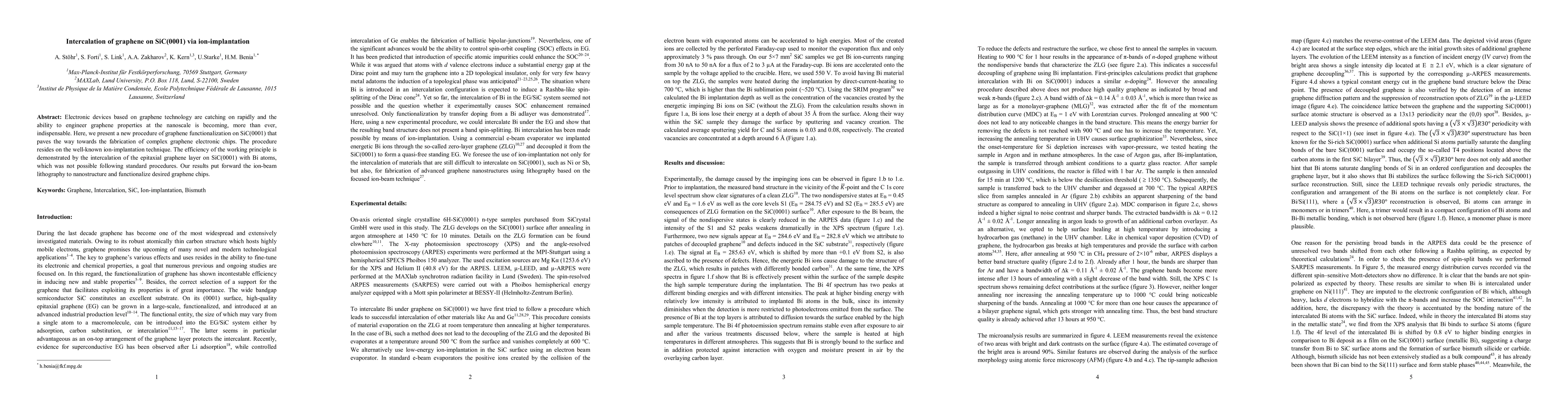 The paper demonstrates the use of ion-implantation for graphene intercalation on SiC(0001), which was previously infeasible, and provides a method for nanostructuring and functionalizing graphene chips.
