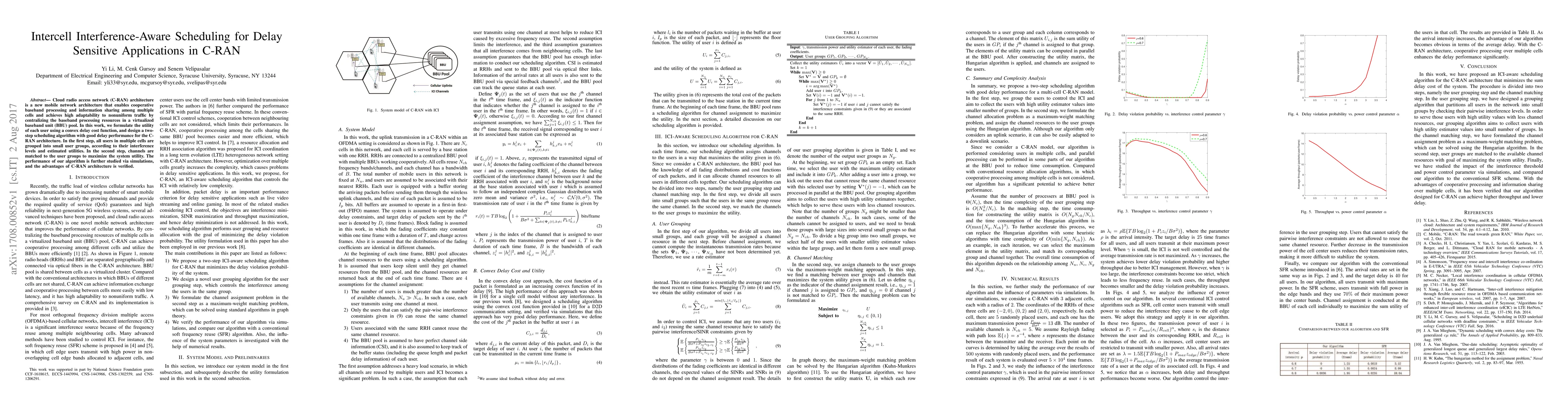 Cloud radio access network (C-RAN) architecture is a new mobile network architecture that enables cooperative baseband processing and information sharing among multiple cells and achieves high adaptability to nonuniform traffic by centralizing the baseband processing resources in a virtualized baseband unit (BBU) pool. In this work, we formulate the utility of each user using a convex delay cost function, and design a two-step scheduling algorithm with good delay performance for the C-RAN architecture. In the first step, all users in multiple cells are grouped into small user groups, according to their interference levels and estimated utilities. In the second step, channels are matched to the user groups to maximize the system utility. The performance of our algorithm is further studied via simulations, and the advantages of C-RAN architecture is verified.