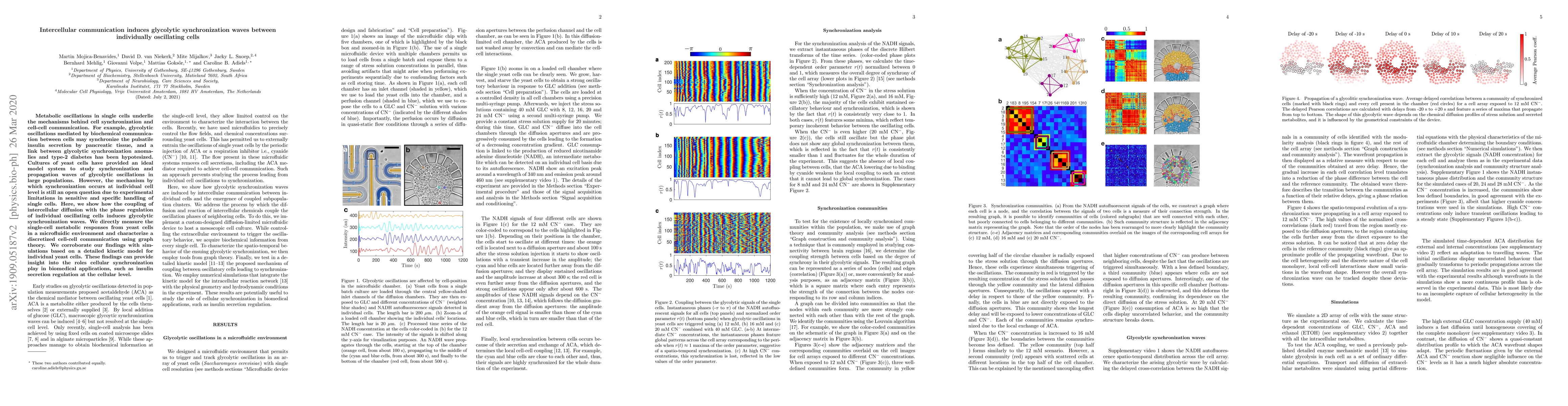 This paper explores how intercellular communication induces glycolytic synchronization waves among individually oscillating yeast cells, revealing mechanisms of synchronization through intercellular diffusion and phase regulation. The findings, supported by microfluidic experiments and simulations, offer insights into cellular synchronization's role in biomedical applications like insulin secretion regulation.