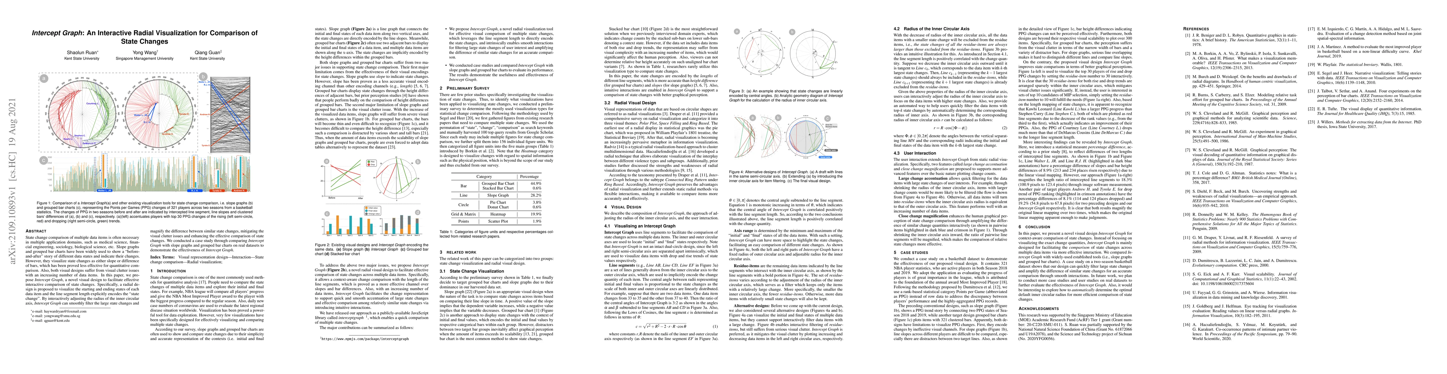 The Intercept Graph visual design facilitates effective comparison of state changes by using a radial design to encode change length and filtering large changes with interactive radius adjustments.