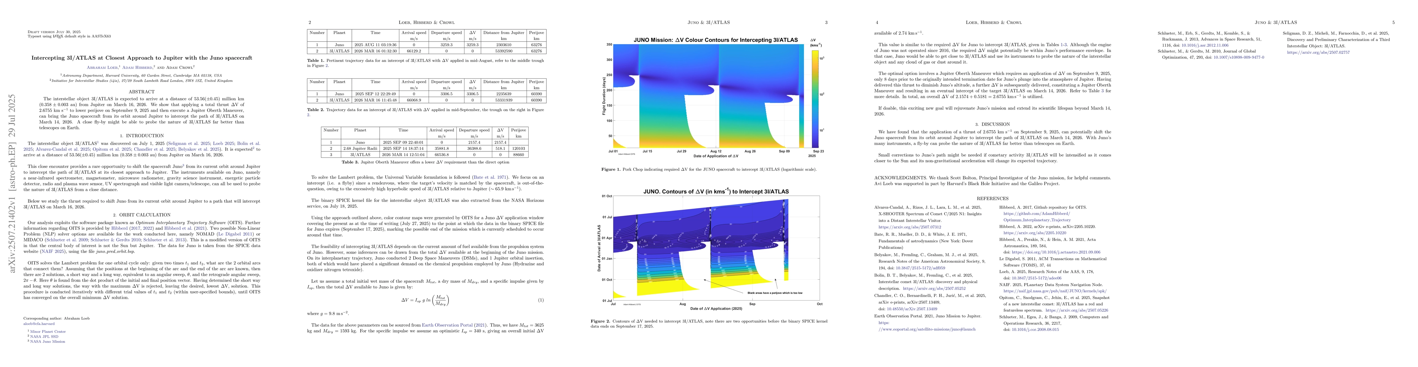 The paper presents a detailed analysis of the required thrust and propellant mass for Juno to come within a range of distances from 3I/ATLAS, utilizing realistic assumptions for spacecraft mass and specific impulse.