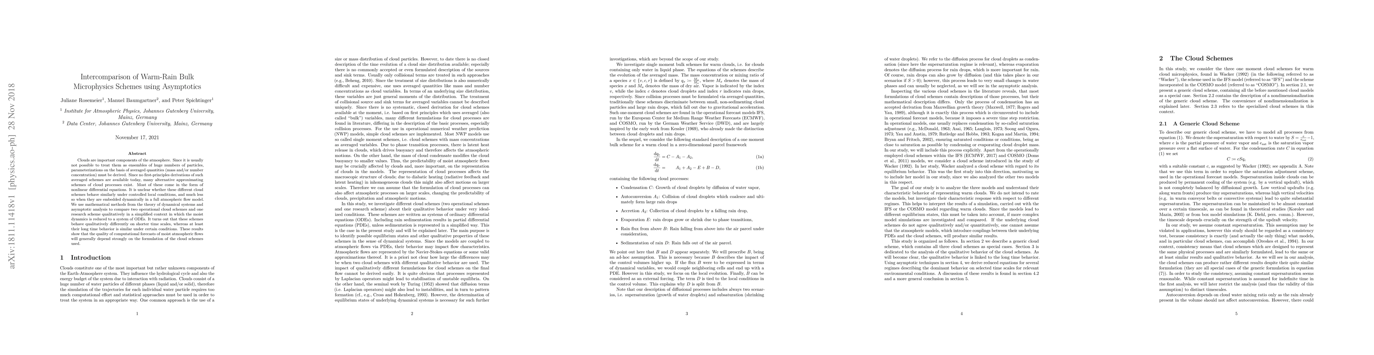 Clouds are important components of the atmosphere. Since it is usually not possible to treat them as ensembles of huge numbers of particles, parameterizations on the basis of averaged quantities (mass and/or number concentration) must be derived. Since no first-principles derivations of such averaged schemes are available today, many alternative approximating schemes of cloud processes exist. Most of these come in the form of nonlinear differential equations. It is unclear whether these different cloud schemes behave similarly under controlled local conditions, and much less so when they are embedded dynamically in a full atmospheric flow model. We use mathematical methods from the theory of dynamical systems and asymptotic analysis to compare two operational cloud schemes and one research scheme qualitatively in a simplified context in which the moist dynamics is reduced to a system of ODEs. It turns out that these schemes behave qualitatively differently on shorter time scales, whereas at least their long time behavior is similar under certain conditions. These results show that the quality of computational forecasts of moist atmospheric flows will generally depend strongly on the formulation of the cloud schemes used.