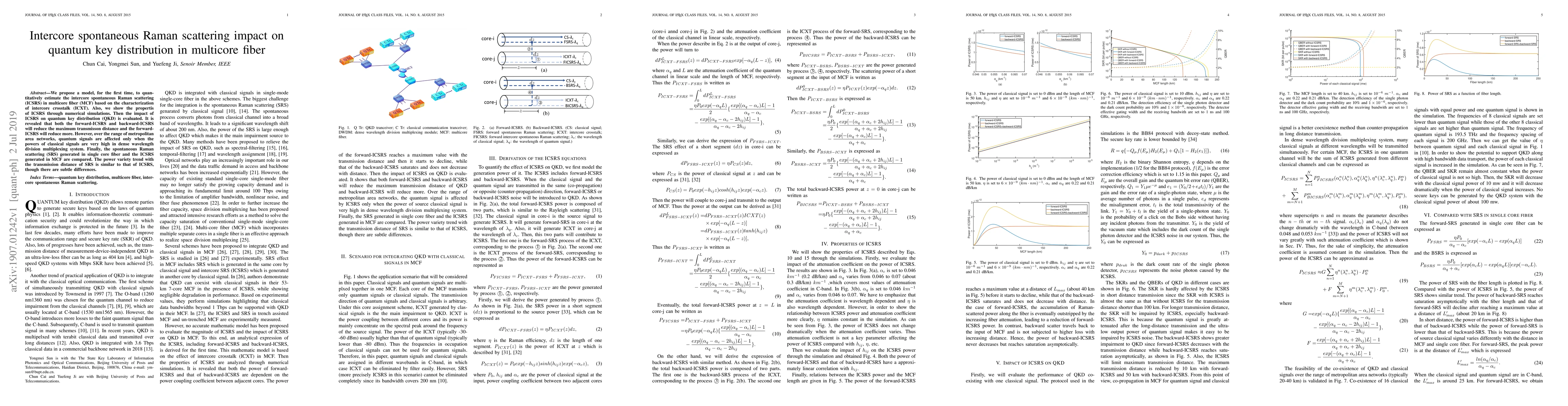 This paper proposes a model to quantify intercore spontaneous Raman scattering (ICSRS) in multicore fiber (MCF) and evaluates its impact on quantum key distribution (QKD). It finds that ICSRS reduces transmission distance, with forward-ICSRS having a greater effect, but only significantly impacts QKD in dense wavelength division multiplexing systems with high classical signal power.