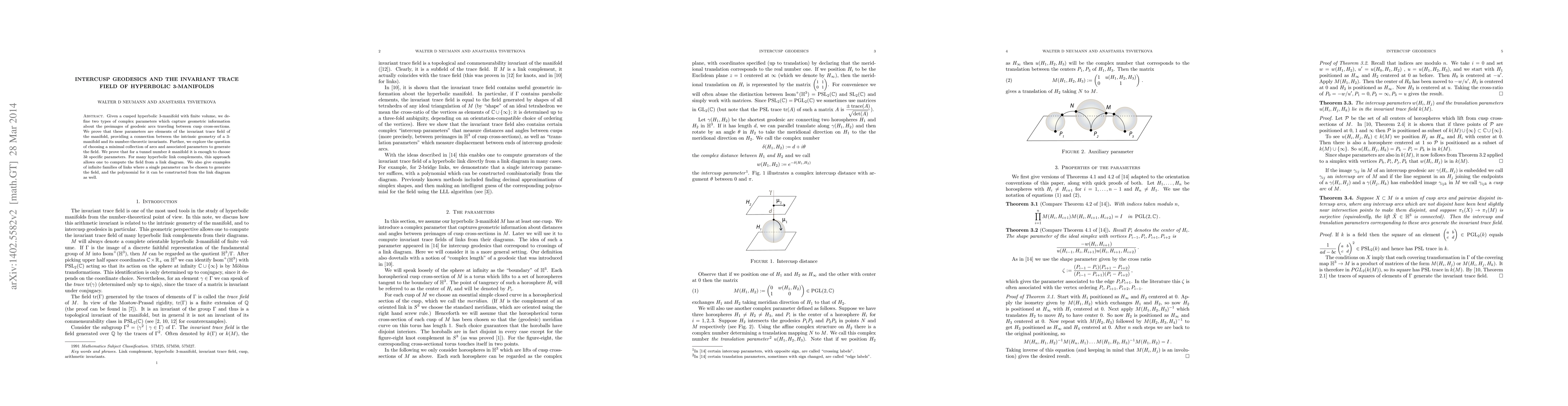 Given a cusped hyperbolic 3-manifold with finite volume, we define two types of complex parameters which capture geometric information about the preimages of geodesic arcs traveling between cusp cross-sections. We prove that these parameters are elements of the invariant trace field of the manifold, providing a connection between the intrinsic geometry of a 3-manifold and its number-theoretic invariants. Further, we explore the question of choosing a minimal collection of arcs and associated parameters to generate the field. We prove that for a tunnel number $k$ manifold it is enough to choose $3k$ specific parameters. For many hyperbolic link complements, this approach allows one to compute the field from a link diagram. We also give examples of infinite families of links where a single parameter can be chosen to generate the field, and the polynomial for it can be constructed from the link diagram as well.