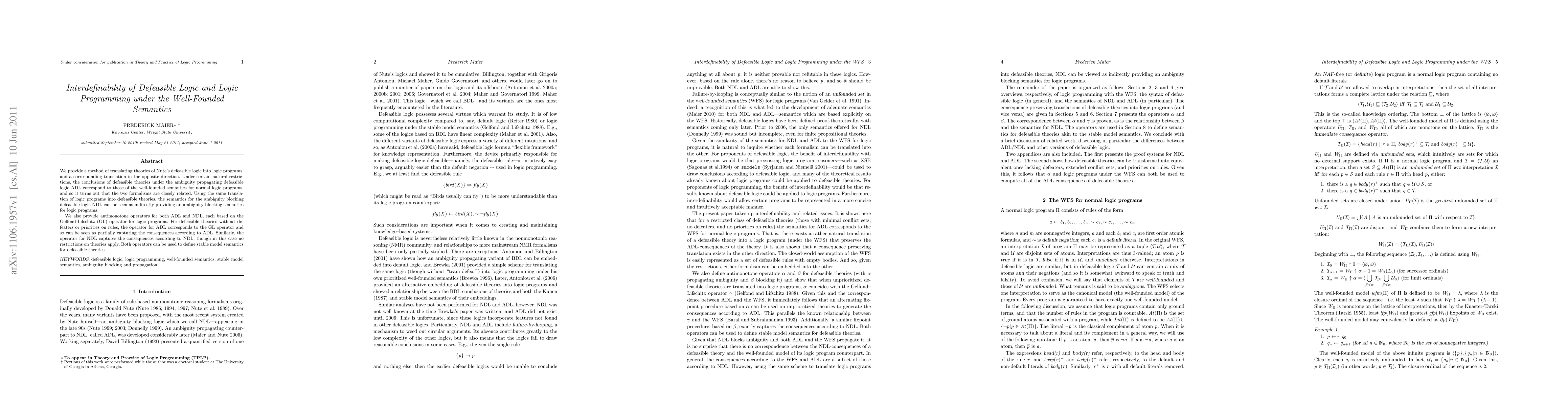 We provide a method of translating theories of Nute's defeasible logic into logic programs, and a corresponding translation in the opposite direction. Under certain natural restrictions, the conclusions of defeasible theories under the ambiguity propagating defeasible logic ADL correspond to those of the well-founded semantics for normal logic programs, and so it turns out that the two formalisms are closely related. Using the same translation of logic programs into defeasible theories, the semantics for the ambiguity blocking defeasible logic NDL can be seen as indirectly providing an ambiguity blocking semantics for logic programs. We also provide antimonotone operators for both ADL and NDL, each based on the Gelfond-Lifschitz (GL) operator for logic programs. For defeasible theories without defeaters or priorities on rules, the operator for ADL corresponds to the GL operator and so can be seen as partially capturing the consequences according to ADL. Similarly, the operator for NDL captures the consequences according to NDL, though in this case no restrictions on theories apply. Both operators can be used to define stable model semantics for defeasible theories.