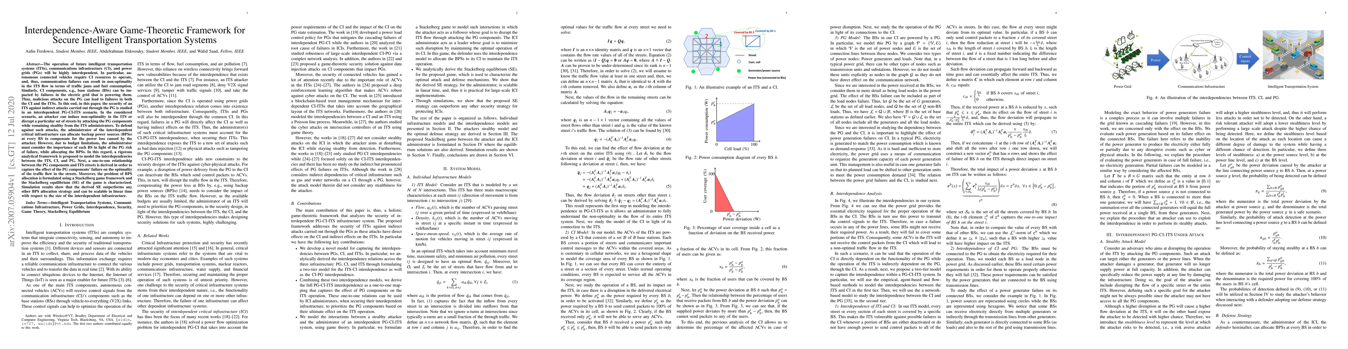 A new game-theoretic framework is proposed to secure intelligent transportation systems against indirect attacks through power grids, ensuring optimal traffic flow while allocating backup power sources.