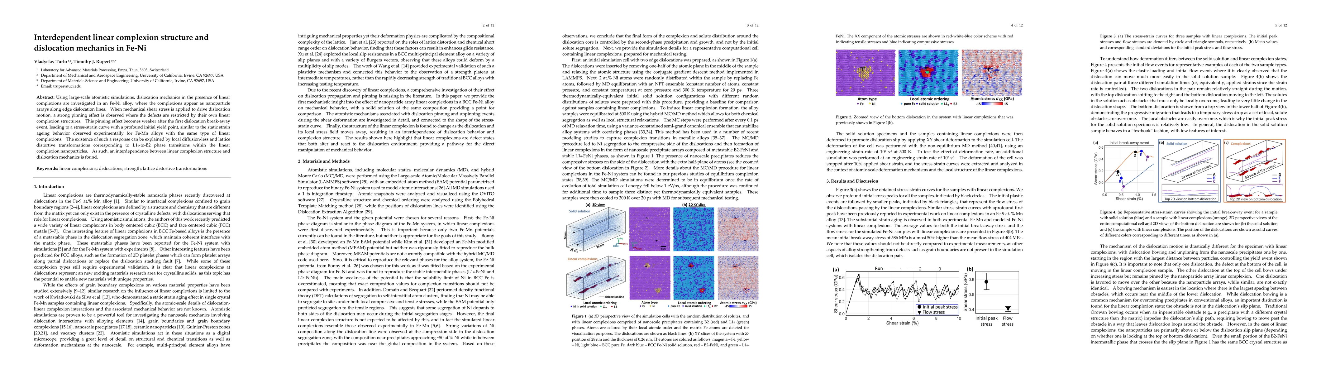 This paper investigates the interaction between dislocation mechanics and linear complexion structures in Fe-Ni alloys using atomistic simulations. The study finds a strong pinning effect of dislocations by their own linear complexions, which weakens after the first dislocation break-away event, leading to an initial yield point in the stress-strain curve.