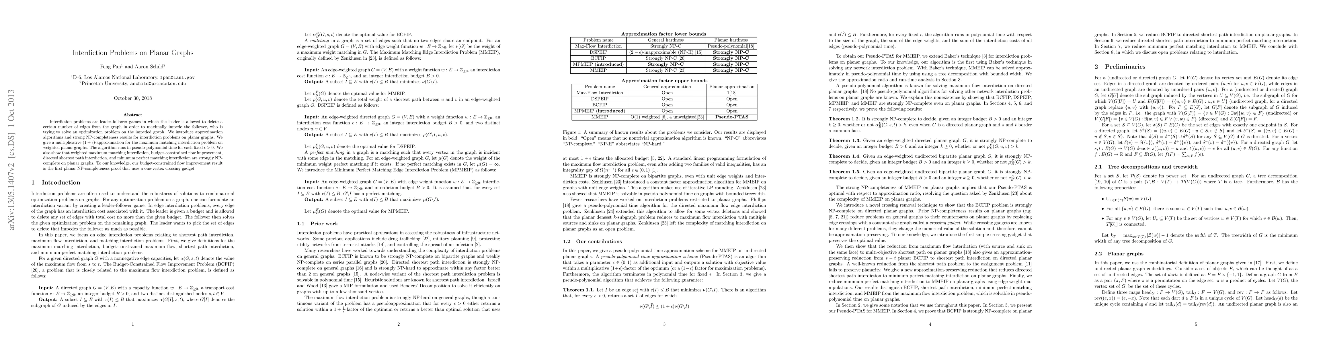 This paper presents approximation algorithms and complexity results for interdiction problems on planar graphs, including a $(1 + \epsilon)$-approximation for maximum matching interdiction. It also demonstrates that several interdiction problems are strongly NP-complete on planar graphs, notably using a novel one-vertex crossing gadget for complexity proofs.