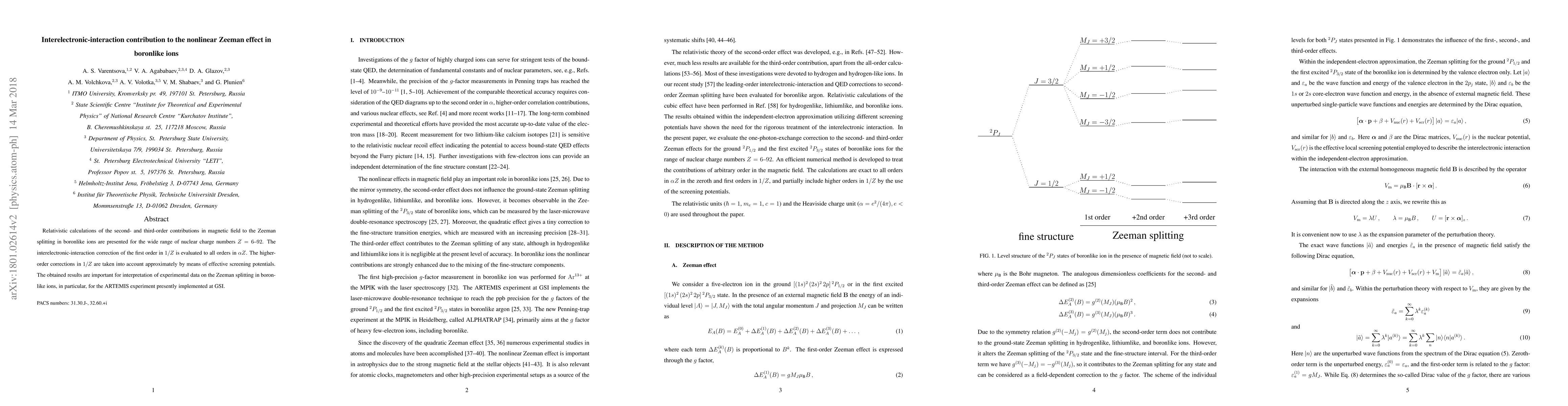 This paper presents relativistic calculations of the second- and third-order magnetic field contributions to the Zeeman splitting in boronlike ions, evaluating interelectronic-interaction corrections for a wide range of nuclear charge numbers. The results are crucial for interpreting experimental data from the ARTEMIS experiment at GSI.