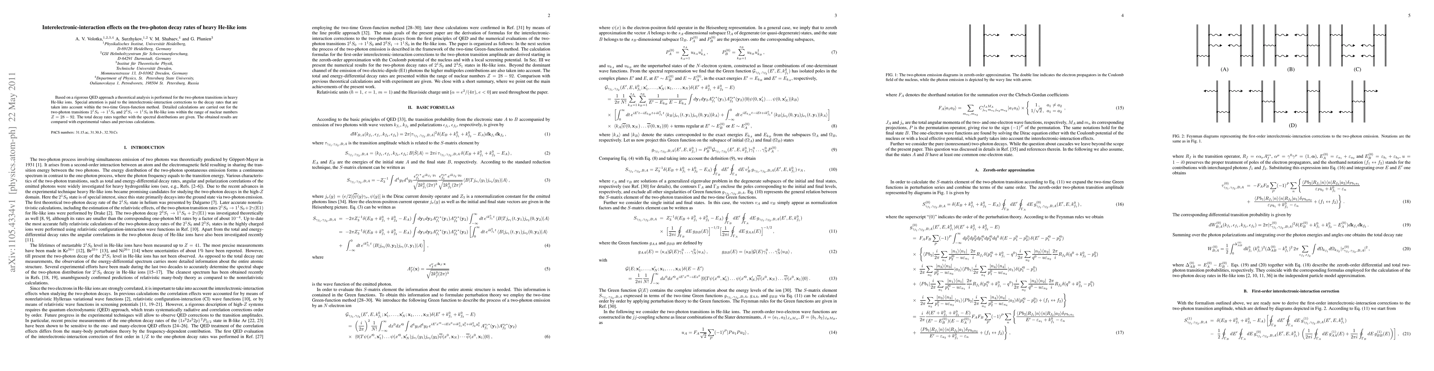 This paper provides a theoretical analysis of two-photon decay rates in heavy He-like ions, focusing on interelectronic-interaction corrections using a QED approach and the two-time Green-function method. Detailed calculations for specific transitions are performed, and results are compared with experimental data and prior studies.