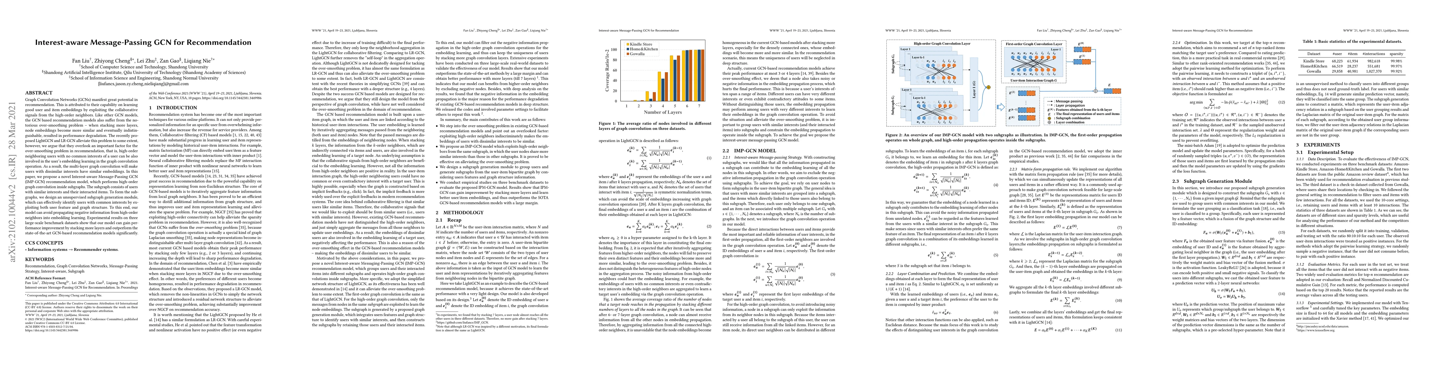 The paper proposes Interest-aware Message-Passing GCN (IMP-GCN), a novel recommendation model addressing the over-smoothing problem in GCNs. IMP-GCN performs high-order graph convolution within subgraphs of users with similar interests, improving performance even with more layers and outperforming existing GCN-based models on large-scale datasets.