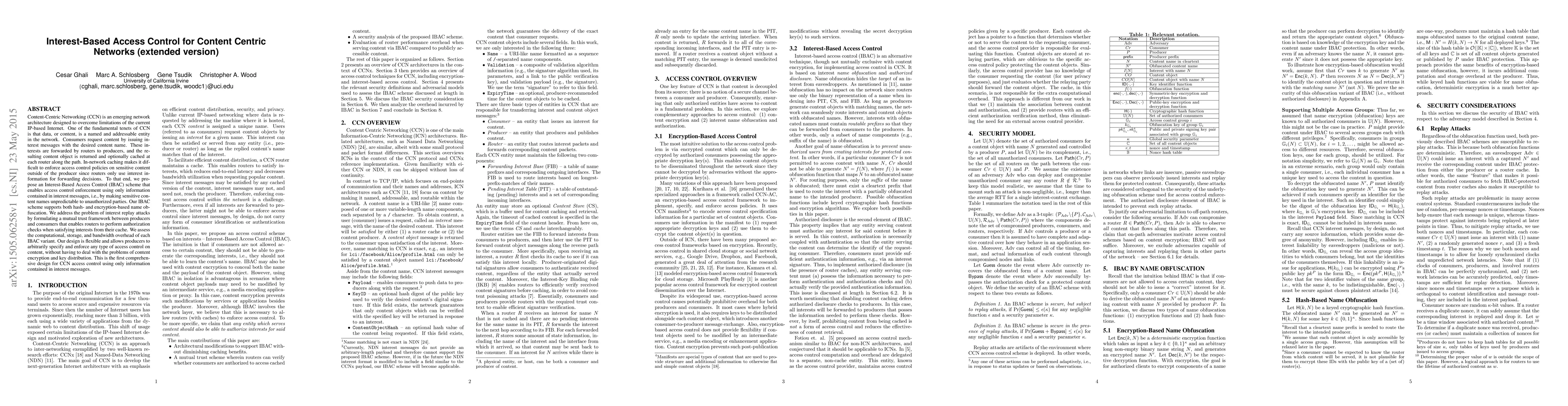 This paper proposes an Interest-Based Access Control (IBAC) scheme for Content-Centric Networking (CCN) to enforce access control on sensitive content using only interest message information, thereby addressing the challenge of in-network caching. The IBAC scheme supports both hash- and encryption-based name obfuscation and includes a mutual trust framework to prevent interest replay attacks.