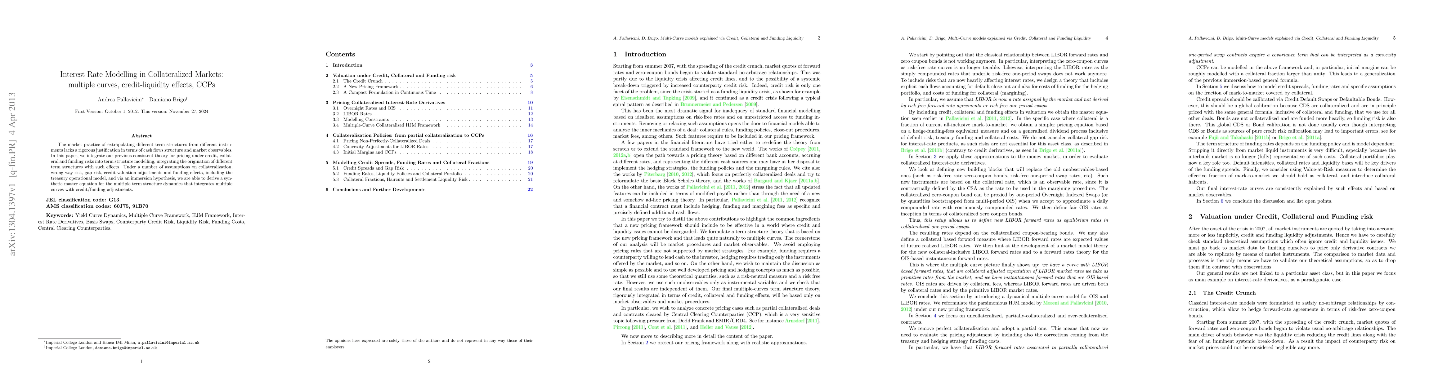 This paper develops a rigorous framework for interest-rate modelling in collateralized markets, integrating multiple term structures with credit, liquidity, and funding effects. It derives a master equation that accounts for collateralization, wrong-way risk, and credit valuation adjustments, providing a comprehensive approach to term structure dynamics.
