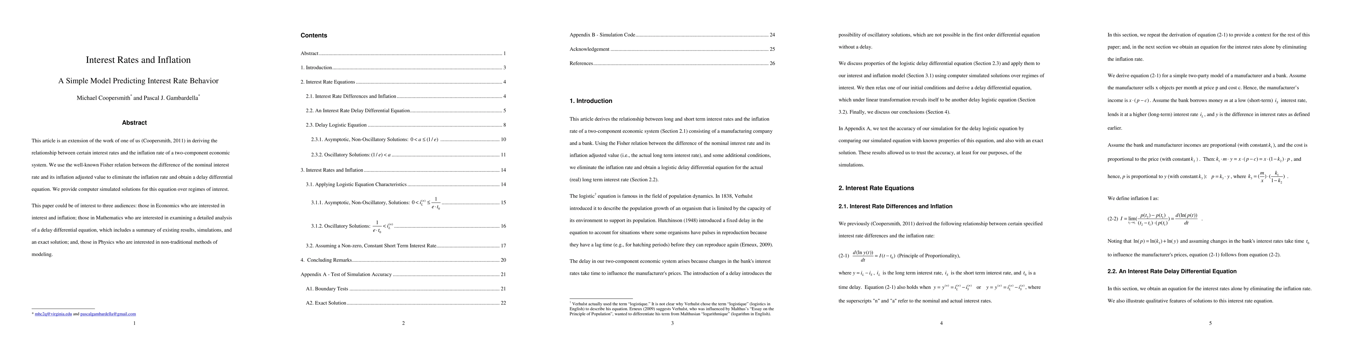 This paper explores the relationship between interest rates and inflation using a delay differential equation, simulating solutions for different interest rate regimes and providing new insights for economists, mathematicians, and physicists.