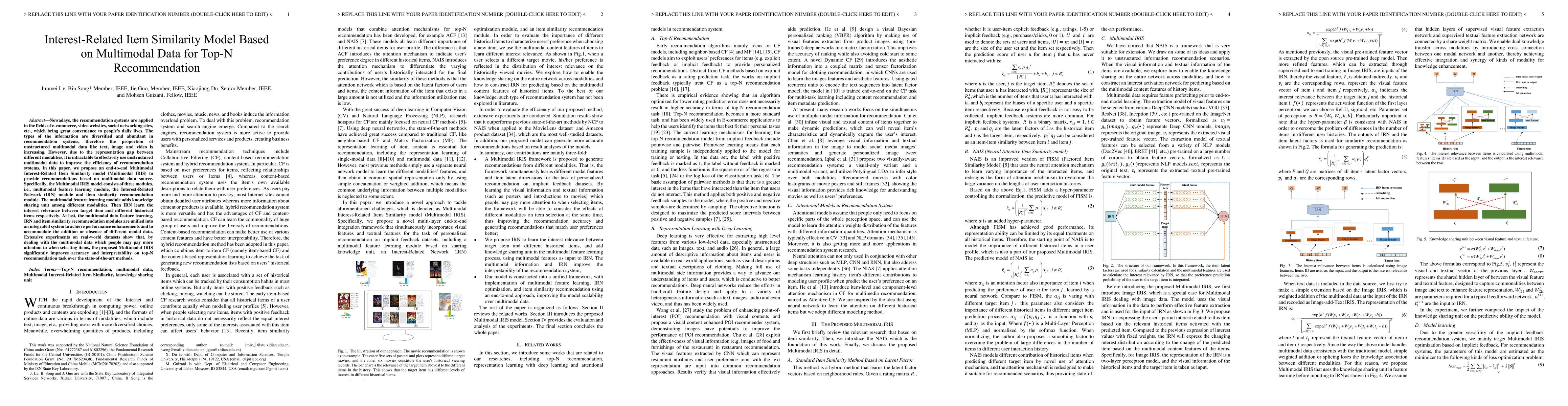 This paper proposes a Multimodal Interest-Related Item Similarity (Multimodal IRIS) model to enhance top-N recommendation systems using multimodal data. The model integrates three modules: multimodal feature learning, Interest-Related Network (IRN), and item similarity recommendation, achieving better accuracy and interpretability compared to state-of-the-art methods.