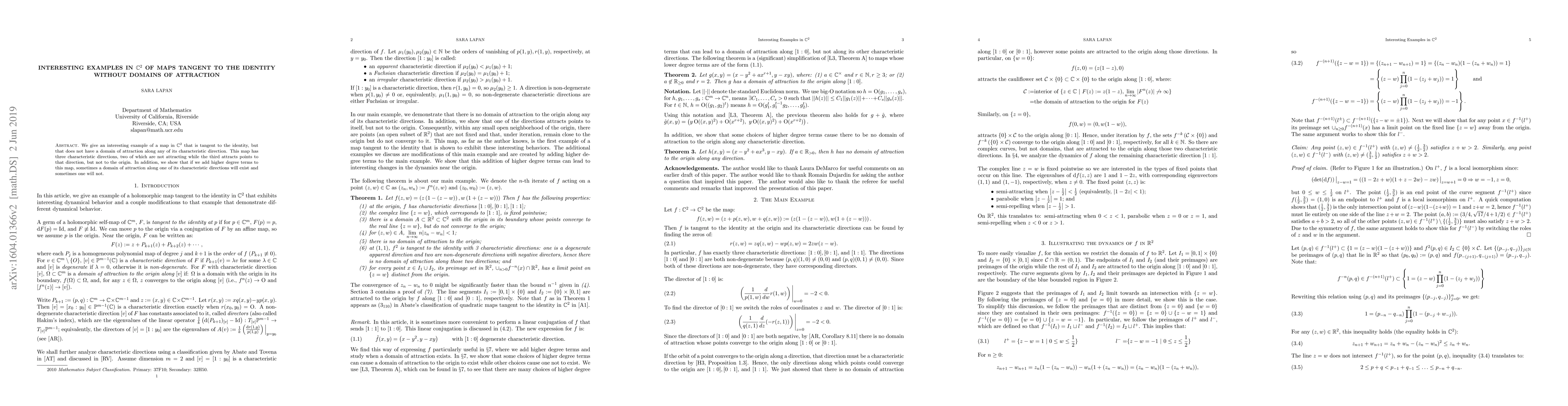 A map in $oldsymbol{ ext{C}}^2$ is found that is tangent to the identity but lacks a domain of attraction along some directions. Adding higher-degree terms can sometimes create such domains.